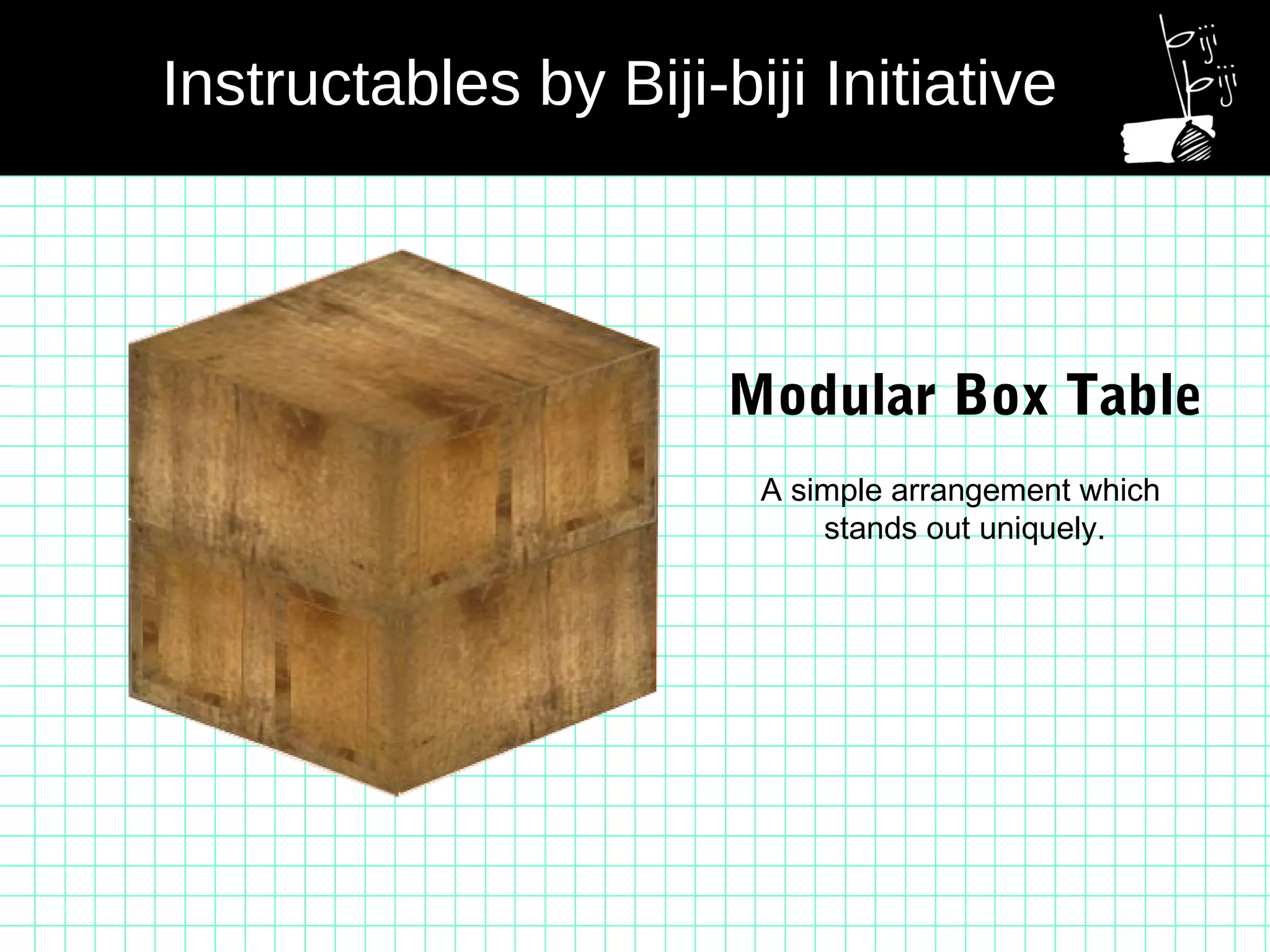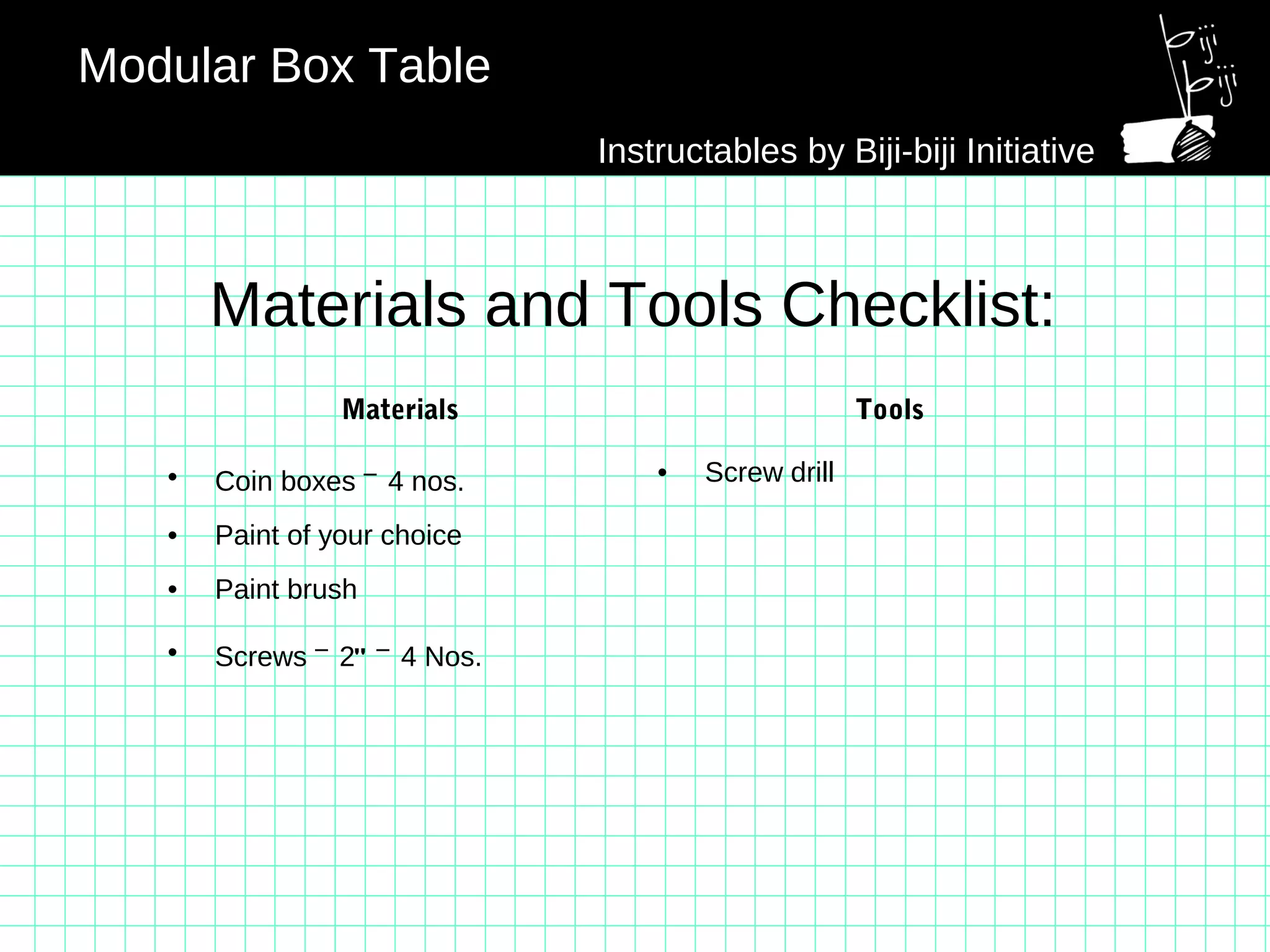 The document provides a step-by-step guide for creating a modular box table using four coin boxes and basic materials. It outlines the assembly process, which involves screwing the boxes together and painting them for a finished look. The result is a unique and visually appealing table.