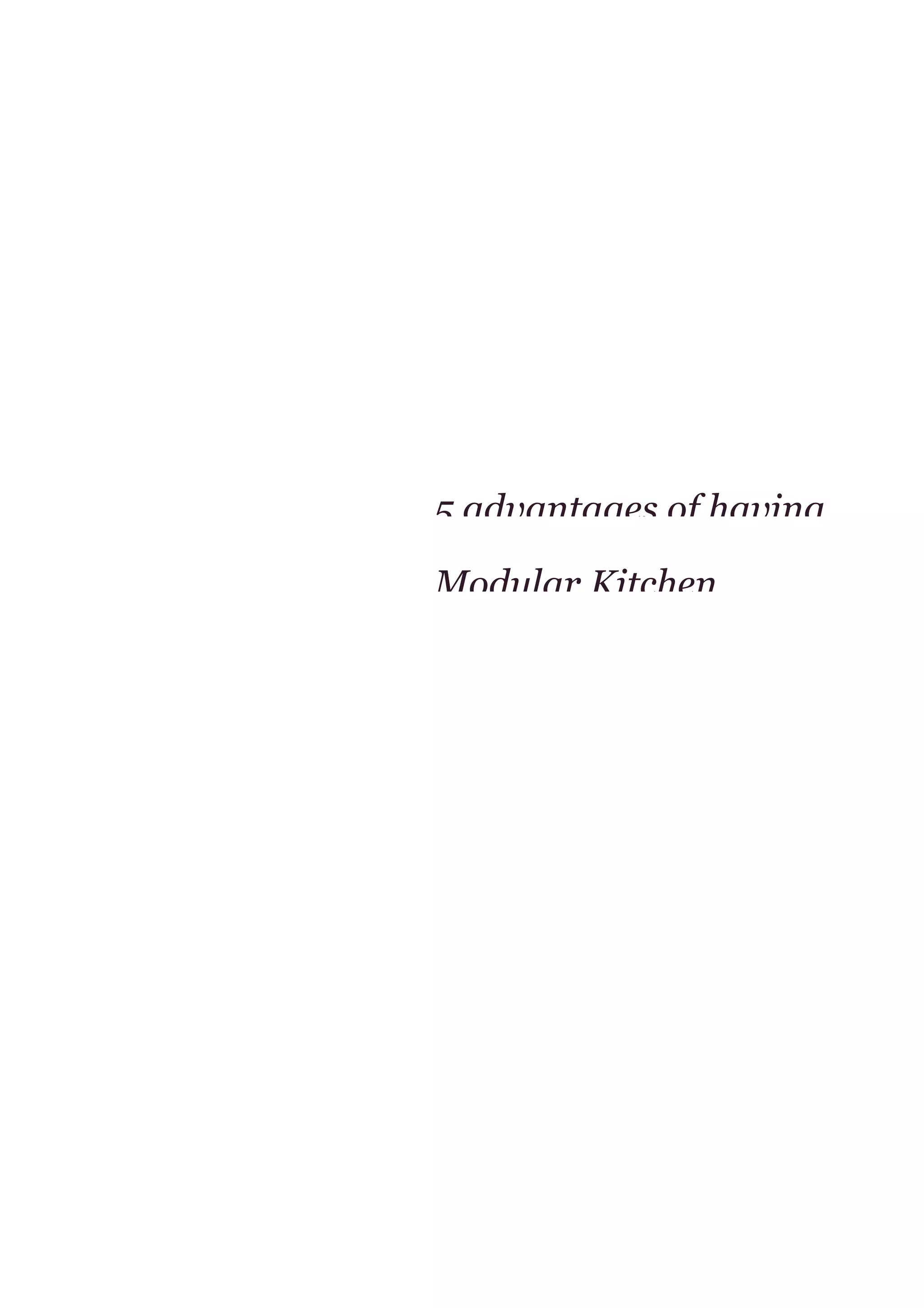 Modular kitchens have 5 main advantages: they are scalable and reusable due to their modular design which allows adding or removing components as needs change; they provide ample storage through purpose-built storage modules; they allow for luxury features like LED lighting while still being comfortable to use; matching appliances are offered that integrate seamlessly with the kitchen design; and a modular kitchen promotes a healthy lifestyle through its organized design.