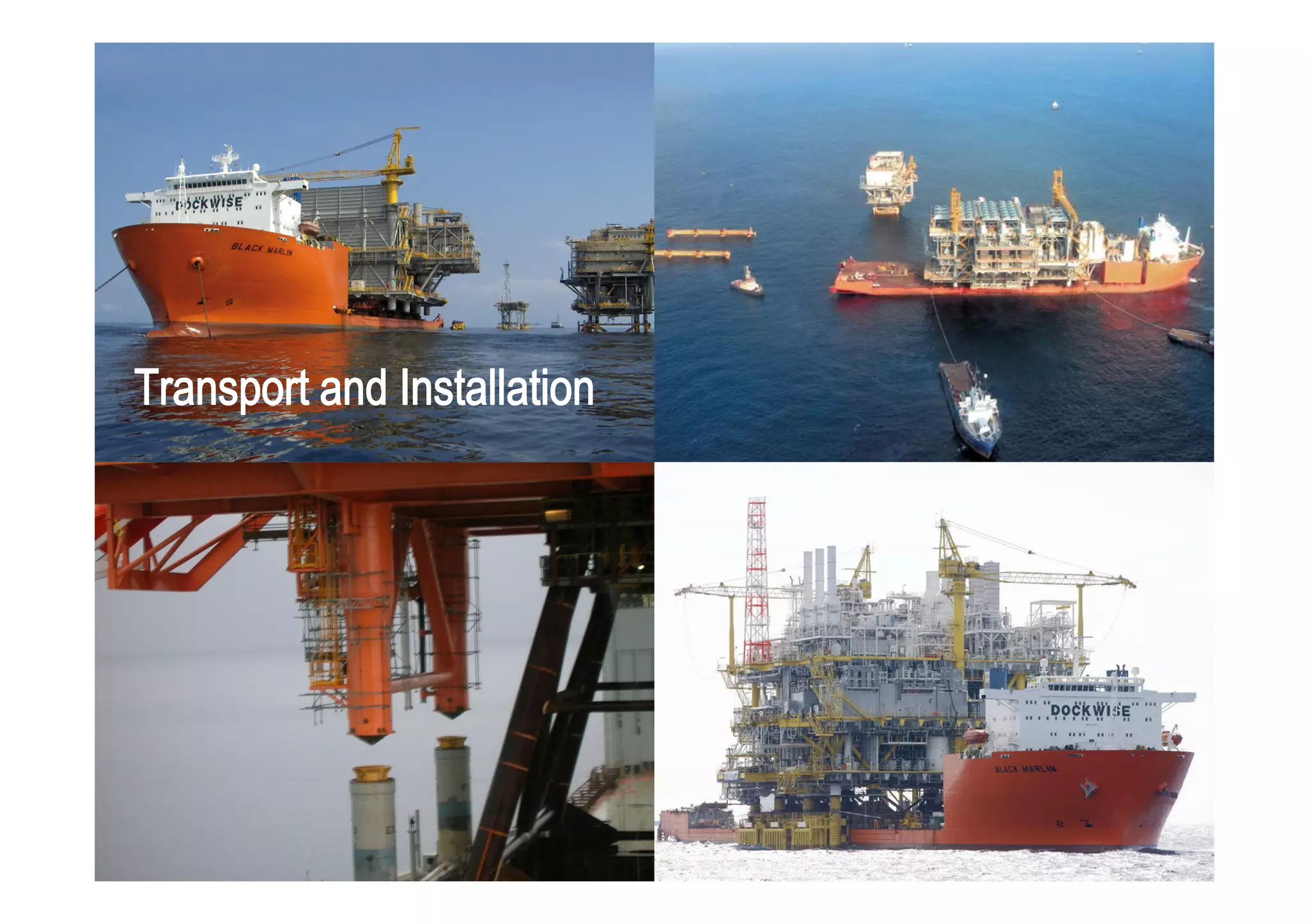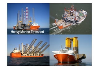The document discusses modularization and heavy transport. It notes that modularization reduces risk and interfaces while optimizing costs. Dockwise specializes in transporting large modules by heavy transport vessels. These self-propelled vessels have advantages over tug and barge including larger carrying capacity, faster transit times, better cargo safety due to reduced motions, and allowing for smaller module steel sizes. Dockwise provides end-to-end logistical management and lumpsum solutions to transport modules from fabrication to installation sites. Early planning of transport is critical to project success.