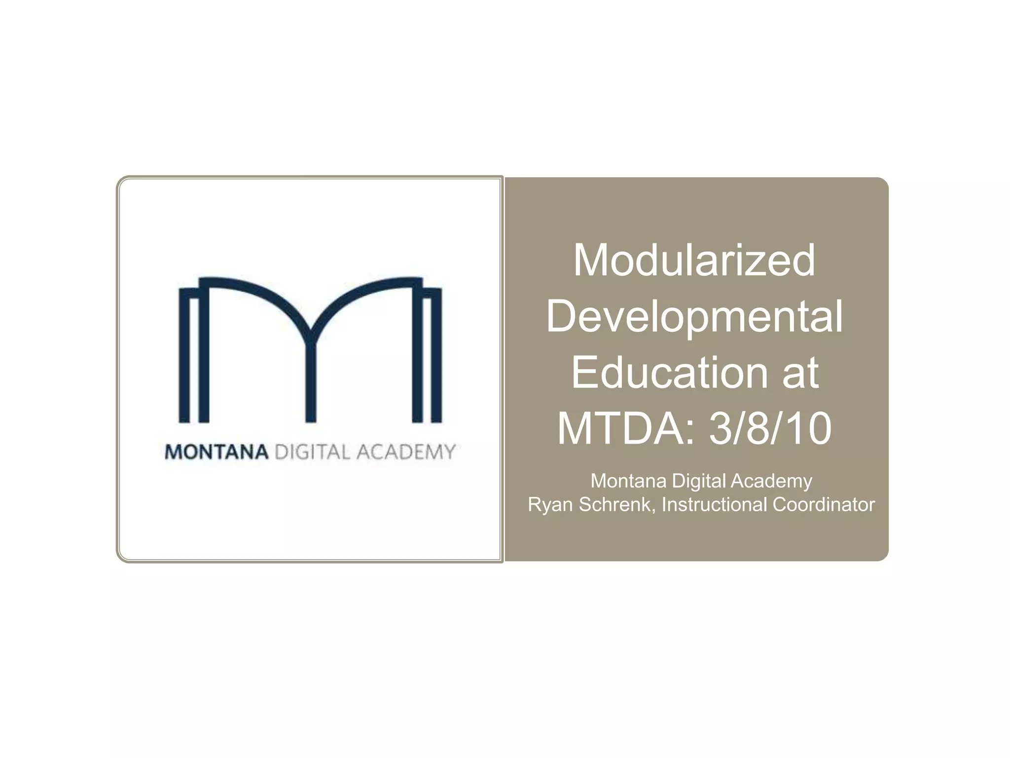 The Montana Digital Academy (MTDA) offers distance learning opportunities to K-12 students in Montana, focusing on high-quality instruction and compliance with educational standards. The MTDA provides three main types of courses: standard courses, dual credit courses, and a credit retrieval program called MTDA Connect, which aims to support students in recovering lost academic credits. The program incorporates individualized learning, technical support, and community involvement to enhance educational outcomes for at-risk students.