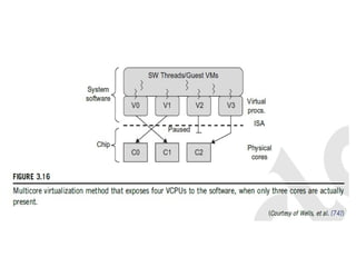 • At the ISA level, virtualization is performed by emulating a given ISA by the ISA