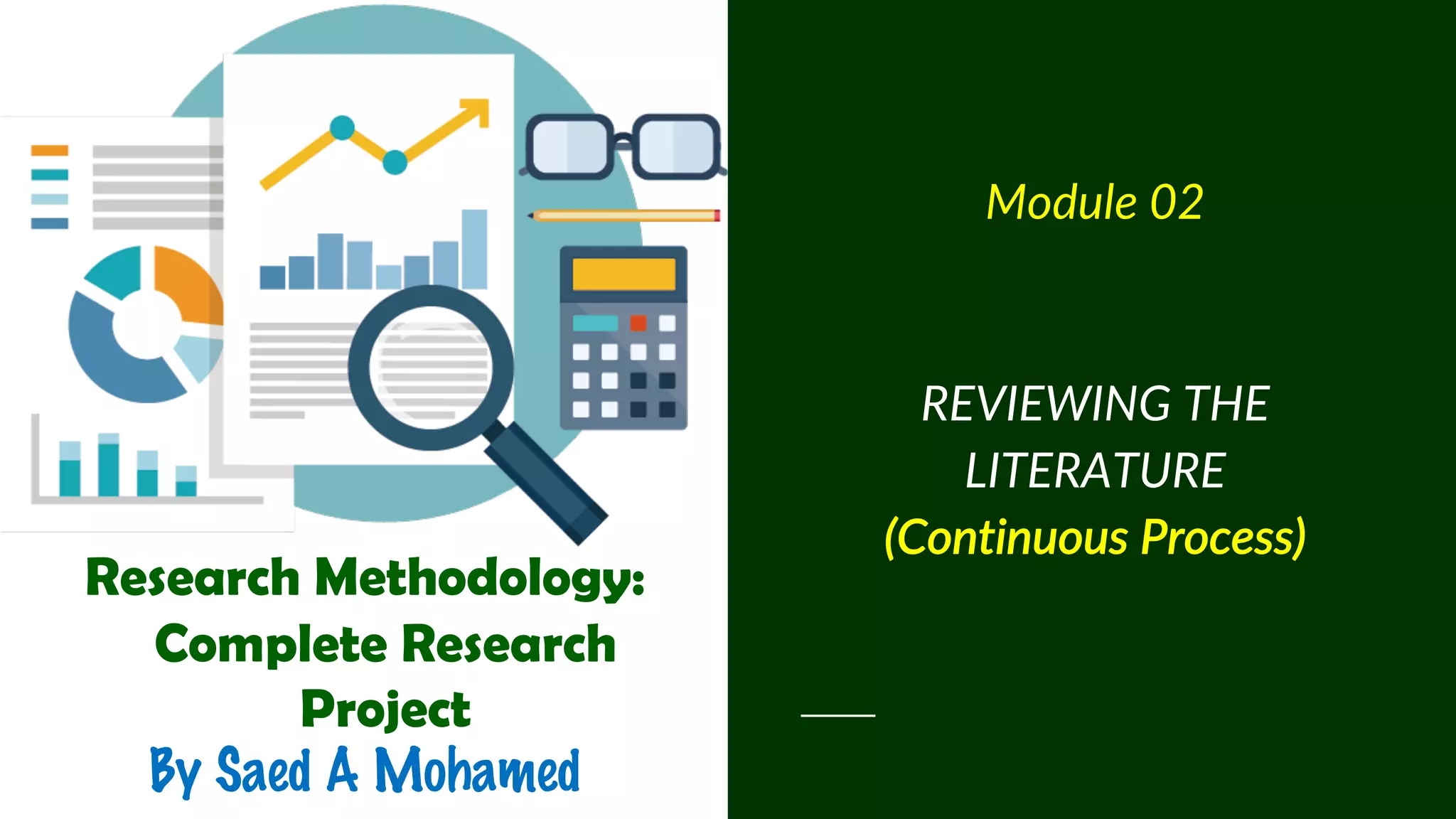 This document provides guidance on conducting a literature review for research. It defines a literature review as a critical evaluation of previous research that allows one to identify relevant theories, methods, and gaps. The purpose of a literature review is to situate a research project within existing scholarly knowledge. It discusses the key steps of a literature review: searching literature, evaluating sources, identifying themes and gaps, outlining the structure, and writing the review. The document emphasizes that a literature review should analyze, synthesize and critically evaluate sources to demonstrate knowledge of scholarly debates.