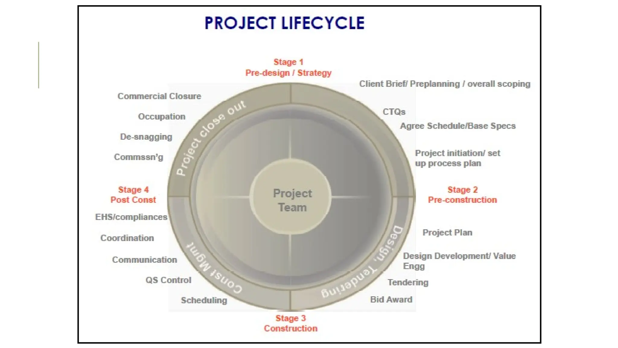 The document provides an introduction to construction project management, outlining the stages and principles of project management, as well as the differences between project management and construction management. It discusses the characteristics of projects, the importance of effective management in achieving project objectives, and the roles and responsibilities of project managers. Additionally, it addresses the various stakeholders involved in construction projects and highlights the need for a structured approach to manage time, cost, quality, and scope within project constraints.