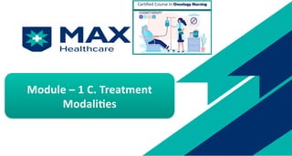 The document outlines key learning objectives for a module on cancer treatment modalities, focusing on imaging techniques and chemotherapy. It details the principles of MRI, radio nuclide imaging, and ultrasound in cancer care, along with chemotherapy types, indications, and common drugs used in treatment. The role of nurses in administering chemotherapy, managing side effects, and providing patient education and support is emphasized throughout.