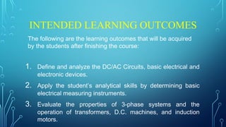 1. Define and analyze the DC/AC Circuits, basic electrical and