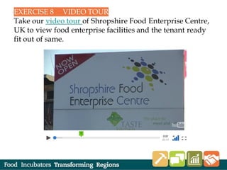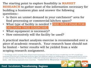 This module provides an overview of food incubators and the first steps in developing one. It discusses how food incubators support culinary entrepreneurs through shared commercial kitchen space and business services. The summary explains that thorough research, feasibility studies, and business planning are crucial first steps to understand demand and ensure long-term viability before developing a food incubator.