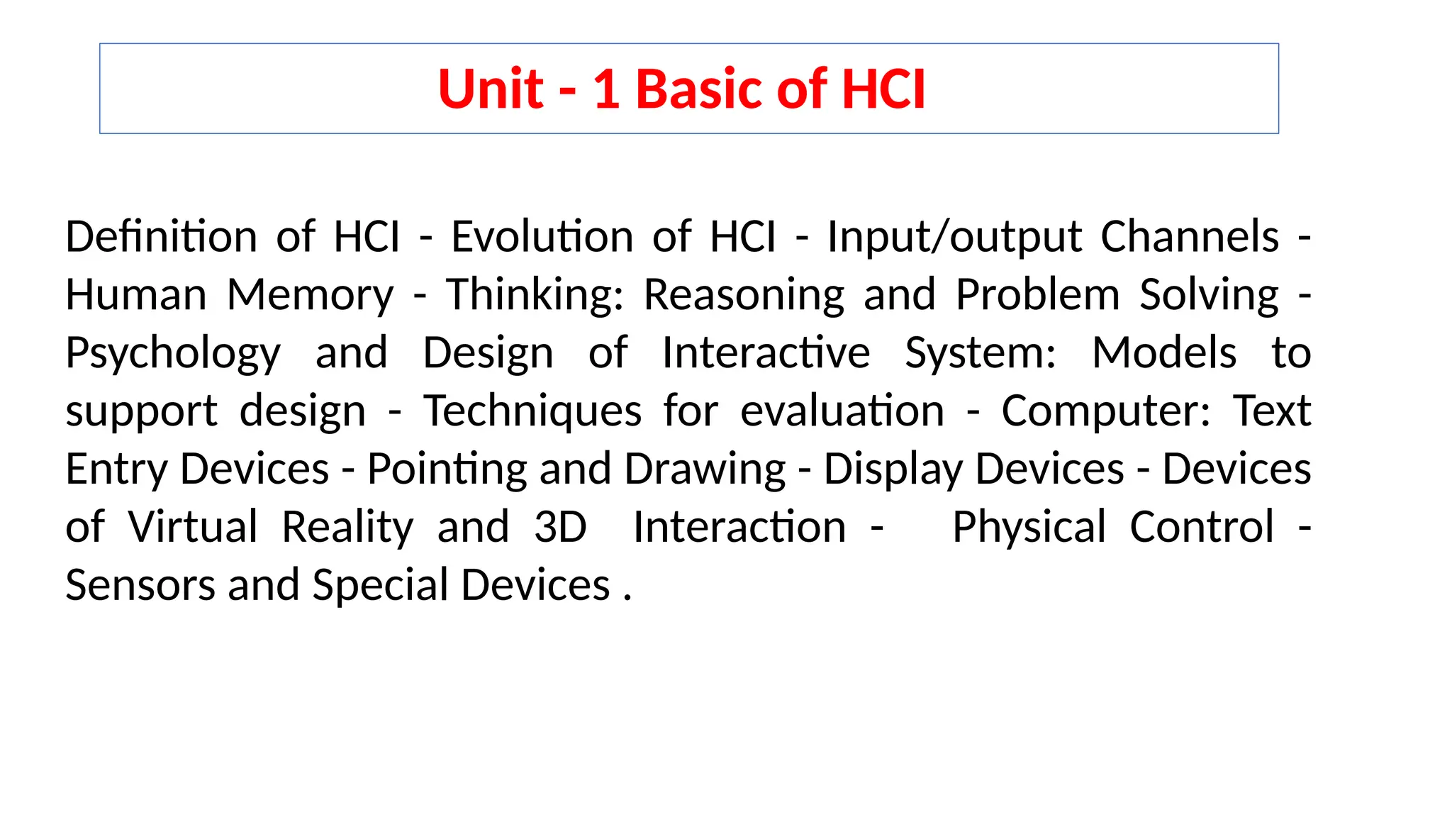 Definition of HCI - Evolution of HCI - Input/output Channels -