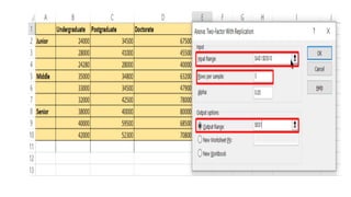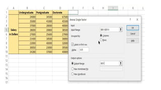 • In thisexample, since the F (9.75) > Fcritical (3.55) for factor 1 (level of education) we can