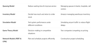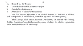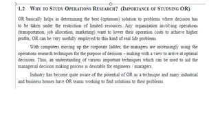 • OR began to be applied to a wider range of problems in the 1950s and 1960s. This was due in part