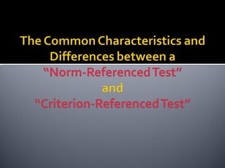 This document defines key terms related to student assessment such as assessment, measurement, evaluation, tests, and testing. It discusses the differences between norm-referenced tests which compare students to peers, and criterion-referenced tests which measure students against standards. The document also outlines different types of assessments including placement, diagnostic, formative, and summative.
