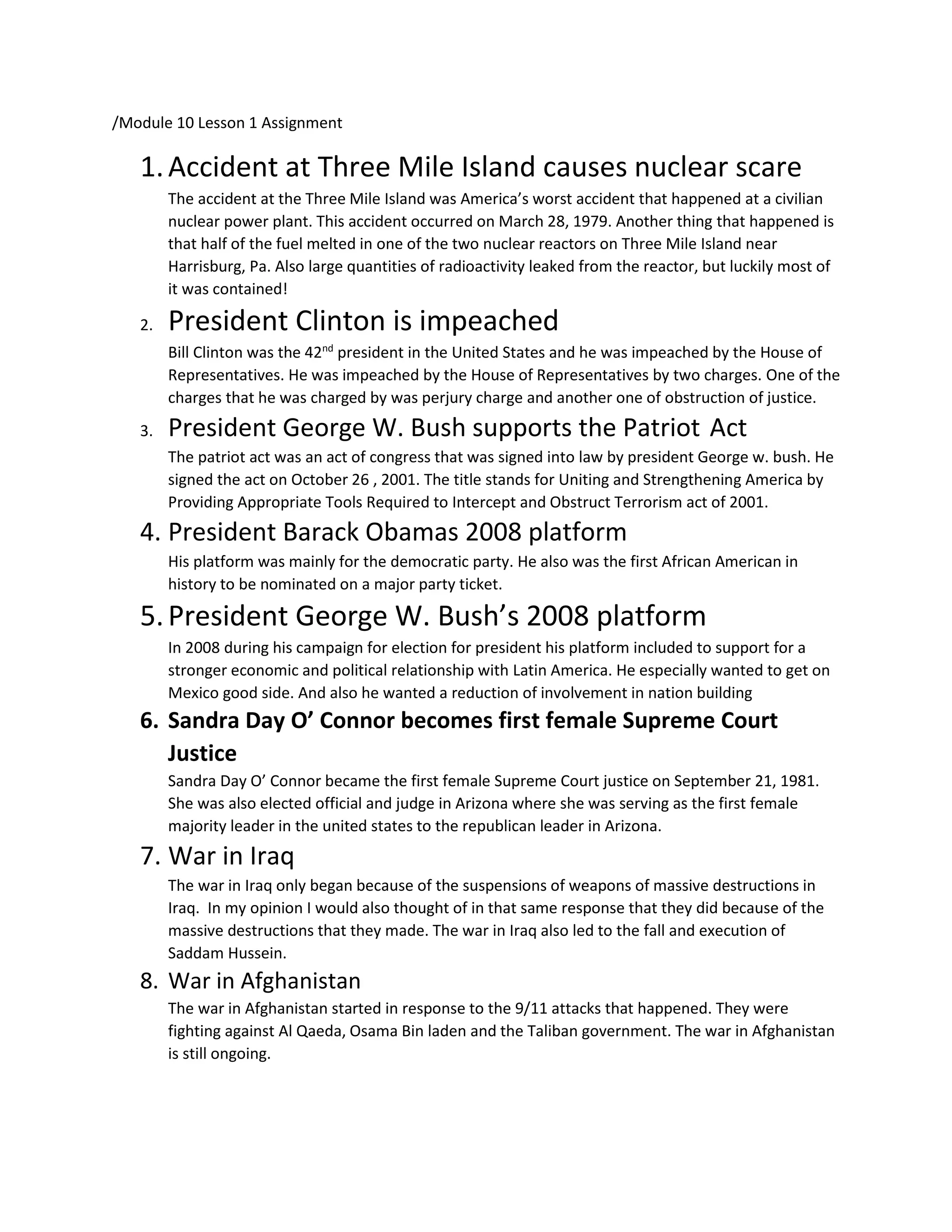 1. The Three Mile Island accident in 1979 was the worst nuclear accident in US history. Half of the fuel in one reactor melted down, and large amounts of radioactivity were released, though most was contained.