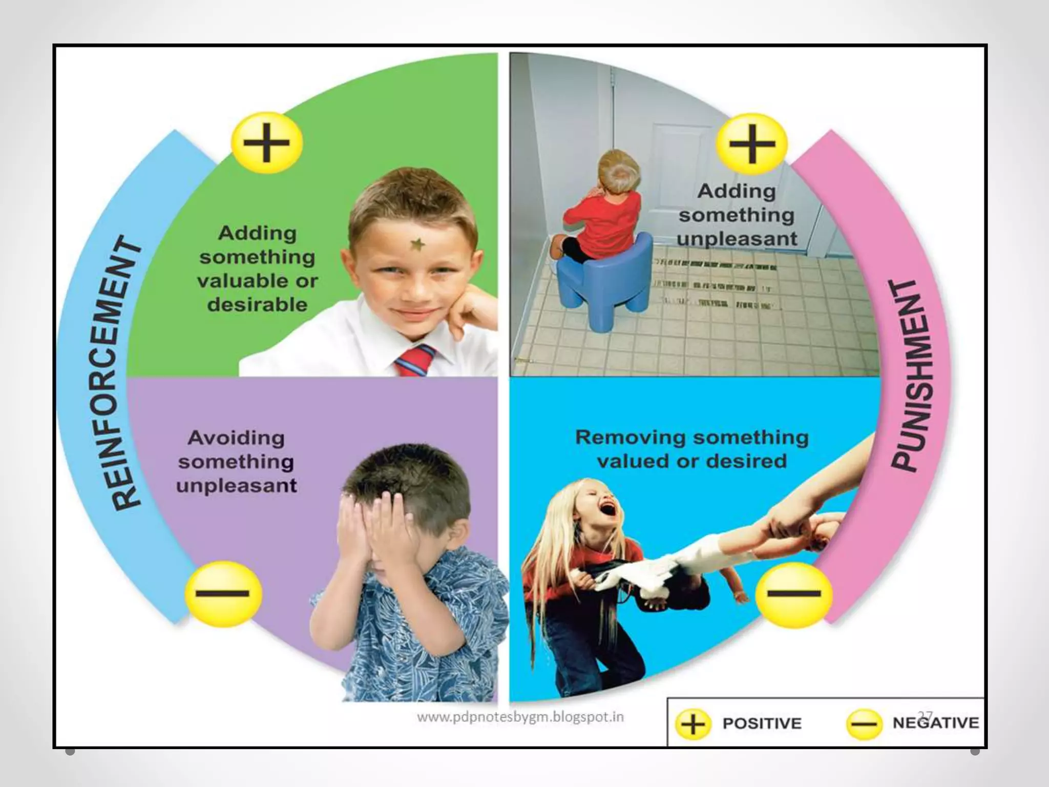 This document provides an overview of principles of learning including reinforcement, understanding, retention, and practice. It discusses theorists like Pavlov, Watson, and Skinner and concepts from classical and operant conditioning like stimulus-response and consequences. Videos on real learning and the brain are referenced. The rest of the document consists of questions about key topics covered, including educators, traditional vs new classrooms, reinforcement, contributors like Skinner, extinction, conditioning types, ABCs of behavior, observational learning steps, and terminology from theorists like Thorndike.