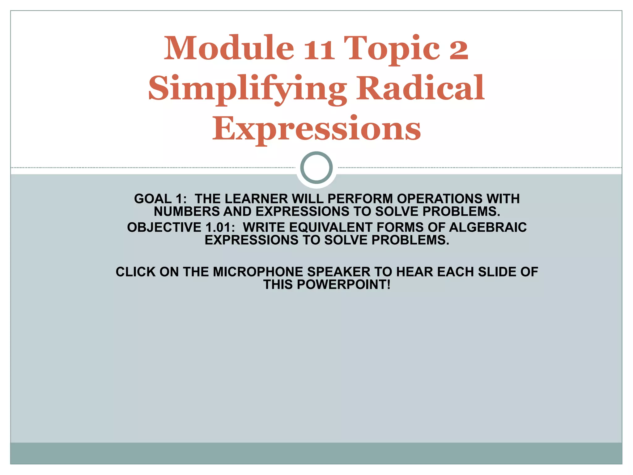 The document provides examples and instructions for simplifying radical expressions: 1) It gives examples of breaking down radicals containing numbers and variables into simpler radical terms by factoring perfect squares. 2) Tips are provided, such as grouping variables in radicals of two because the square root of a square is just the number or variable. 3) Examples demonstrate multiplying and simplifying radicals by first breaking them apart and then reducing any perfect square radicals or radicals that occur twice.