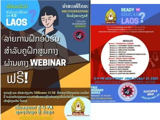 This is the 2ND in a series of 15 webinar modules reference material for Pedagogical Conten Knowledge (PCK) for Lao Teacher Training of the Ministry of Education and Sports, Lao PDR, with assistance from the Education for Employment Sector Development Project (EESDP) with the Asian Development Bank. This initiative is a convergence effort of the Department of General Education (DGE), Research Institute for Educational Sciences (RIES), the Dept. of Teacher Training (DTE) and the Institute For Education Administration Development (IFEAD). Packaged by Project Implementation Consultant (PIC) Intem Philppines.