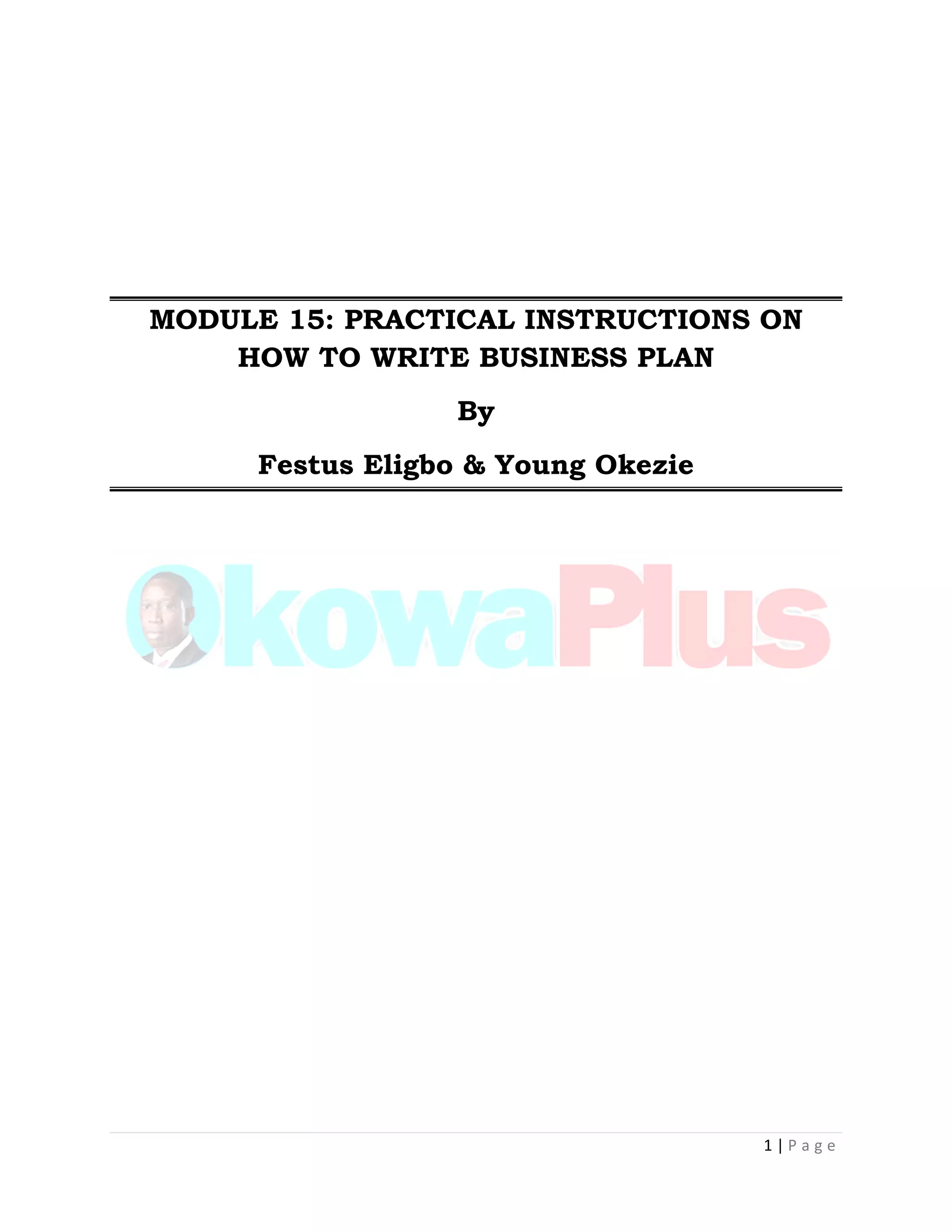 This document provides instructions on how to write a business plan. It outlines the key elements that should be included in a business plan such as an executive summary, company description, industry analysis, marketing plan, management team, and financial plan. It also provides examples of financial assumptions that may be used for different types of business plans, such as for a printing business and concrete products factory. The overall goal of the course is to teach participants how to develop a complete and bankable business plan that will convince potential investors or lenders to provide funding.