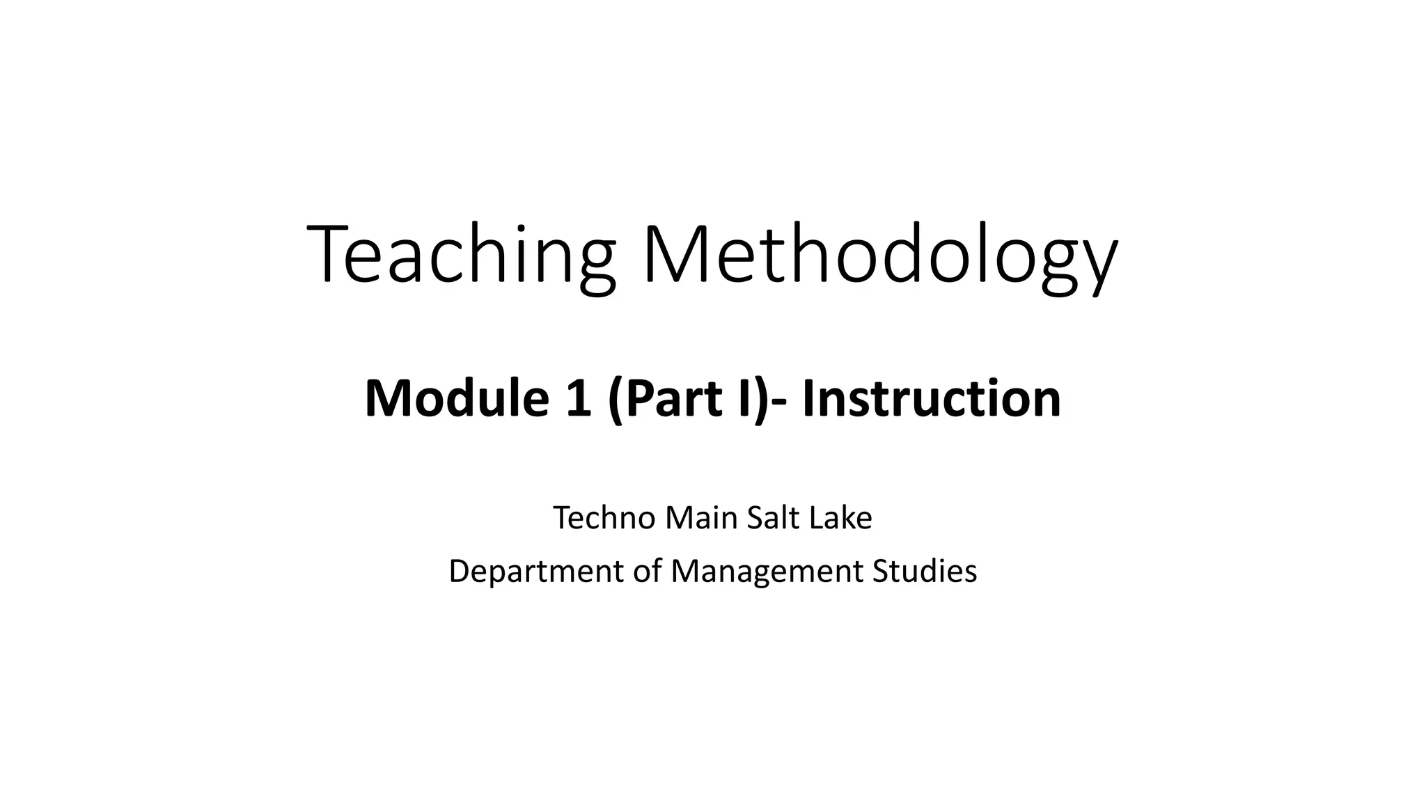 This document discusses teaching methodology and the elements of an instructional system. It outlines 10 key elements: specifying objectives, selecting content, assessing student entry behavior, learning strategies, classroom organization, allocating time, allocating learning spaces, selecting resources, evaluating performance, and providing feedback. The role of the teacher is also discussed, including being the designer of the instruction program, having subject matter expertise, writing objectives, choosing resources and techniques creatively, and assessing/evaluating teaching.