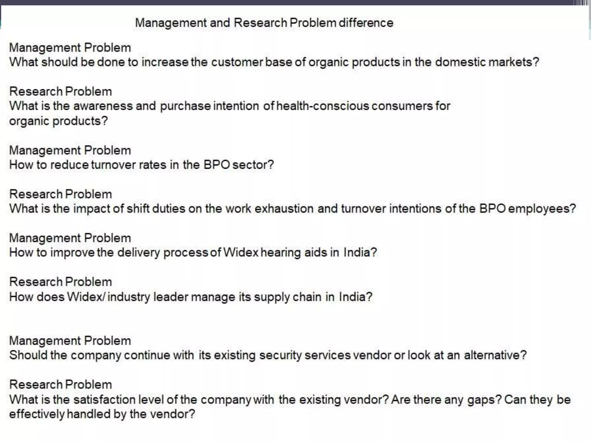 - Business research involves acquiring information and knowledge for professional or commercial purposes such as determining opportunities and goals for a business.