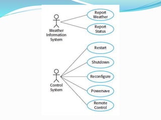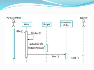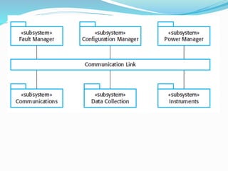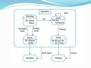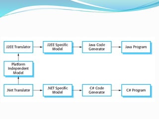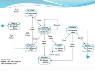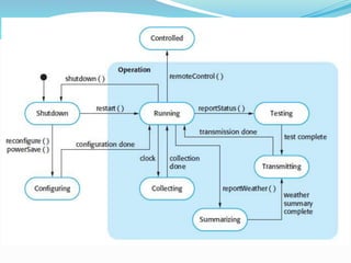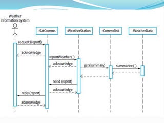 System modeling involves developing abstract models of a system from different perspectives using notations like UML. Models are used during requirements, design, and documentation. Common model types include context models, interaction models using use cases and sequence diagrams, structural class diagrams, and behavioral state diagrams. Model-driven engineering aims to generate implementations automatically from models. Key aspects of software design include understanding interactions, architectural design, identifying objects, developing design models, and specifying interfaces. Design patterns provide reusable solutions to common problems.