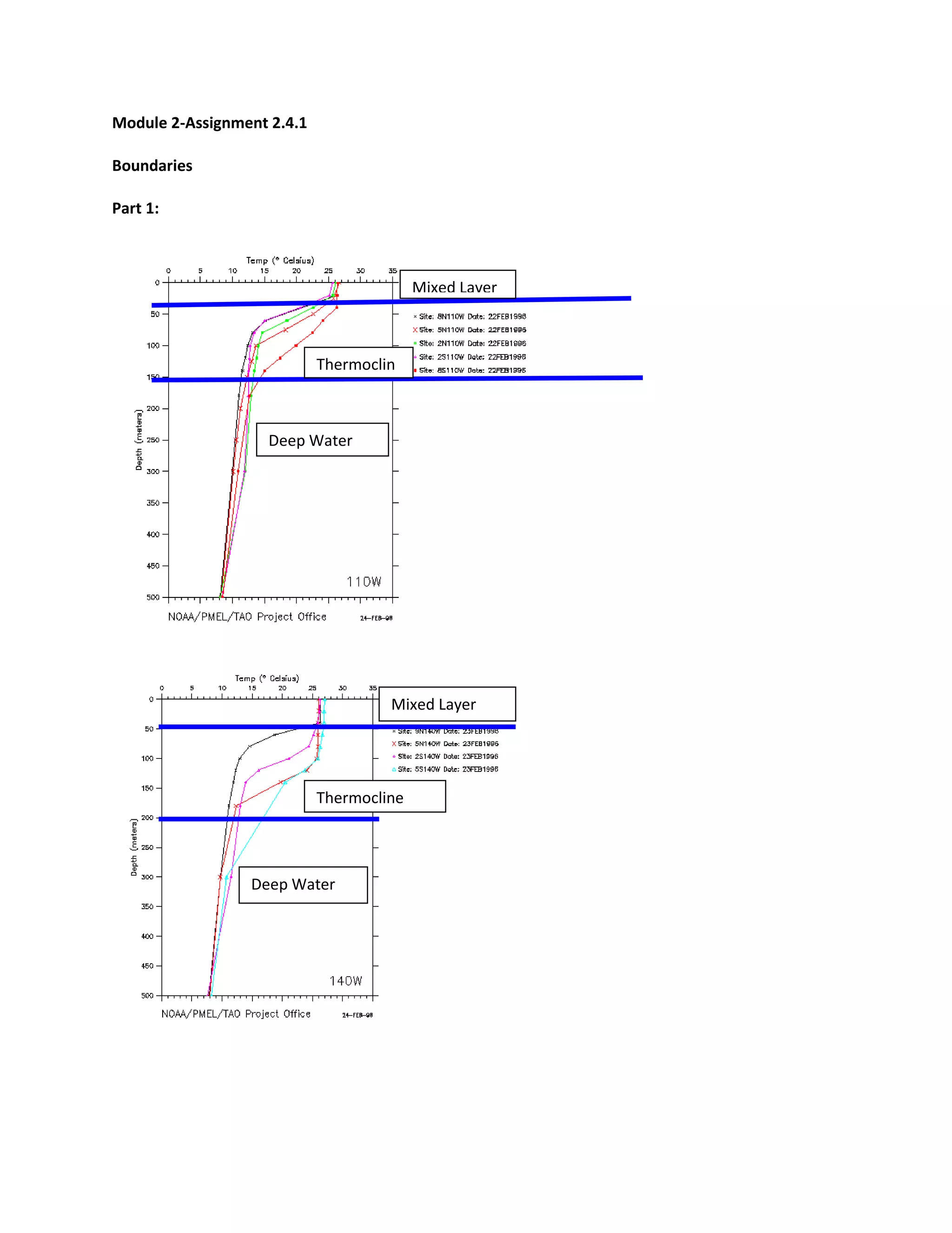 2) Measurements along the Equatorial Pacific show the thermocline deepening westward, with warmer water extending less than 50m at 110W but much deeper further west.