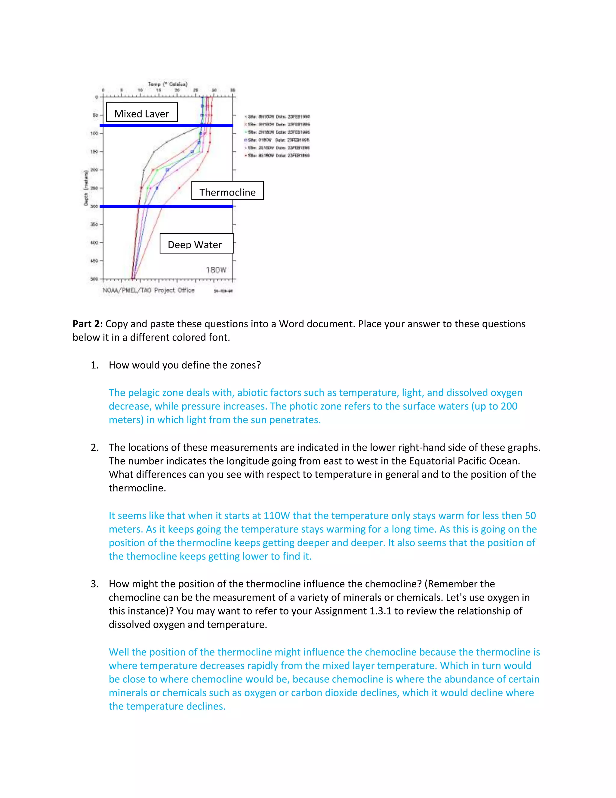 3) The thermocline influences the chemocline since both mark rapid changes in temperature and dissolved chemicals like oxygen.