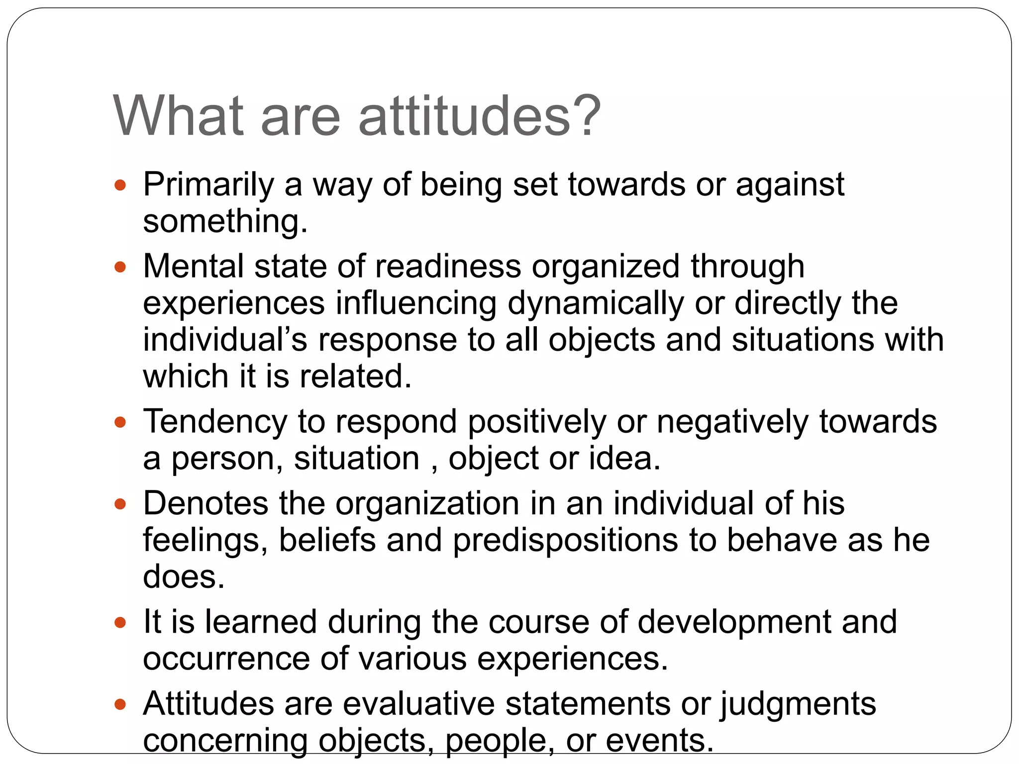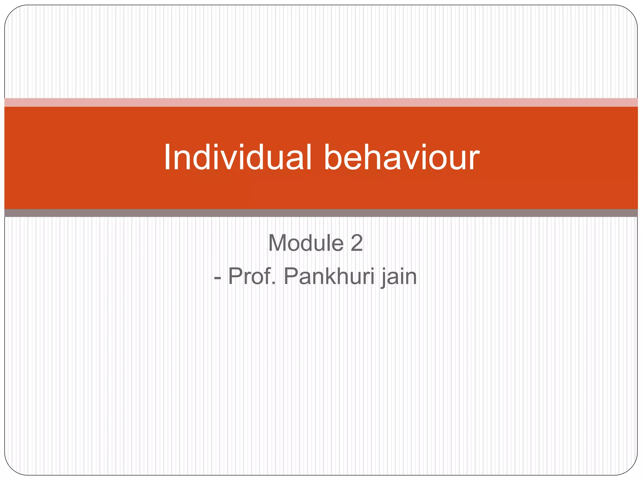 The document discusses individual behavior, focusing on attitudes, their components, sources, and the impact of cognitive dissonance theory. It also examines organizational attitudes such as job satisfaction, job involvement, and organizational commitment, along with the influences of personality traits like Machiavellianism, introversion/extroversion, locus of control, self-esteem, self-monitoring, and risk-taking on workplace dynamics. Overall, it highlights how personal and environmental factors shape attitudes and behaviors within organizations.