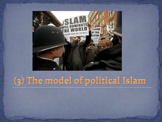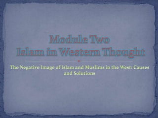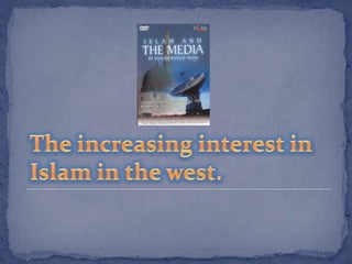 This document discusses the increasing interest in Islam in the West and reasons for negative perceptions of Islam. It analyzes factors that have led to the idea of an "Islamic threat" in Western societies, including political events, increased Muslim migration to Europe, and prejudices rooted in historical rivalries between Islam and Christianity. The document also examines misleading tendencies in how the Western media and experts analyze Muslim communities and issues related to the growing Muslim presence in Western Europe.