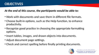 • Work with documents and save them in different file formats.