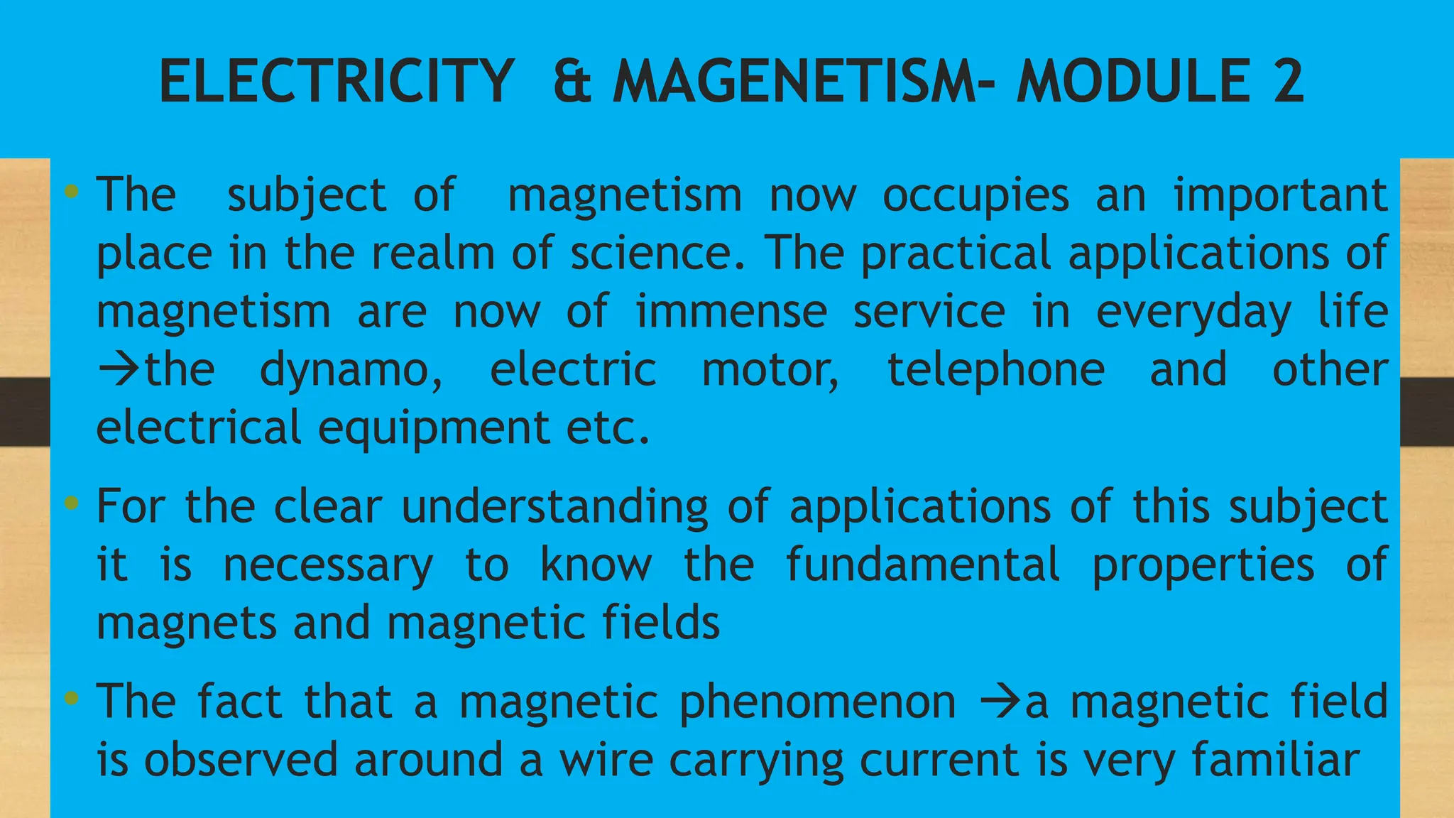 This document discusses electricity and magnetism. It provides information on the fundamental properties of magnets and magnetic fields. Some key points include: