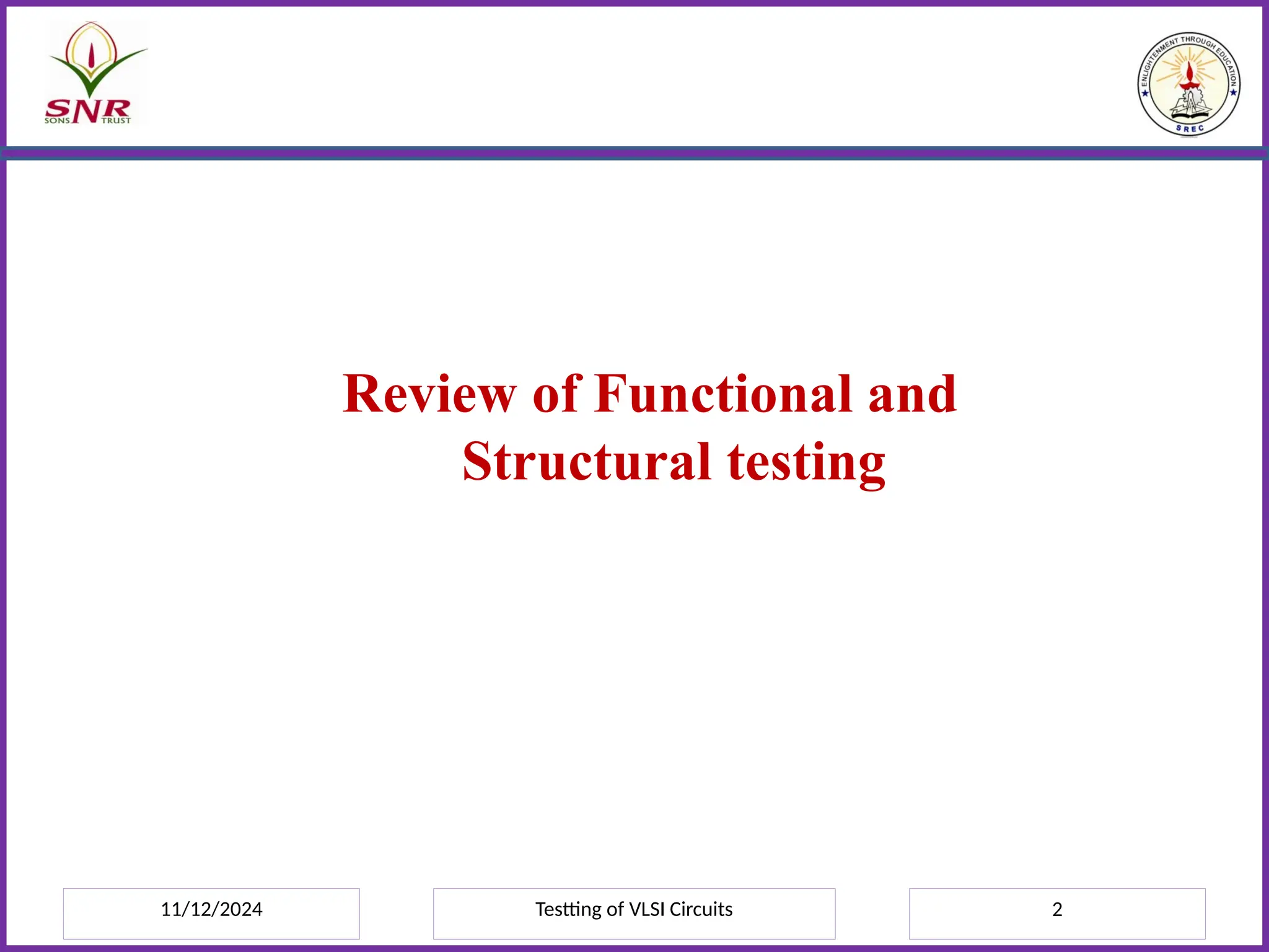The document discusses VLSI circuit testing, emphasizing the differences between functional and structural testing, the importance of Automatic Test Pattern Generation (ATPG), and various test generation methods including D-algorithm and path sensitization. It highlights the effectiveness of structural testing over functional testing and provides insights into testing combinational and sequential circuits. Additionally, the document addresses the complexities and requirements of ATPG in the context of increasing circuit sizes and clock frequencies.