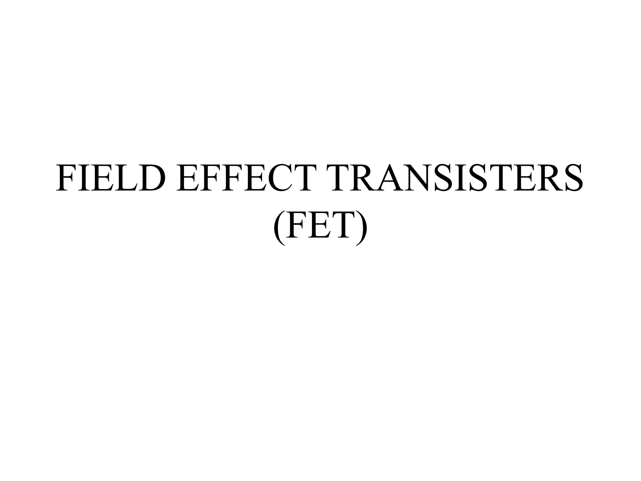 This document discusses field effect transistors (FETs) and junction field effect transistors (JFETs) specifically. It provides details on: