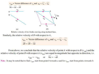 2. The relative velocity method constructs velocity triangles to find velocities. It can be used for any linkage configuration.