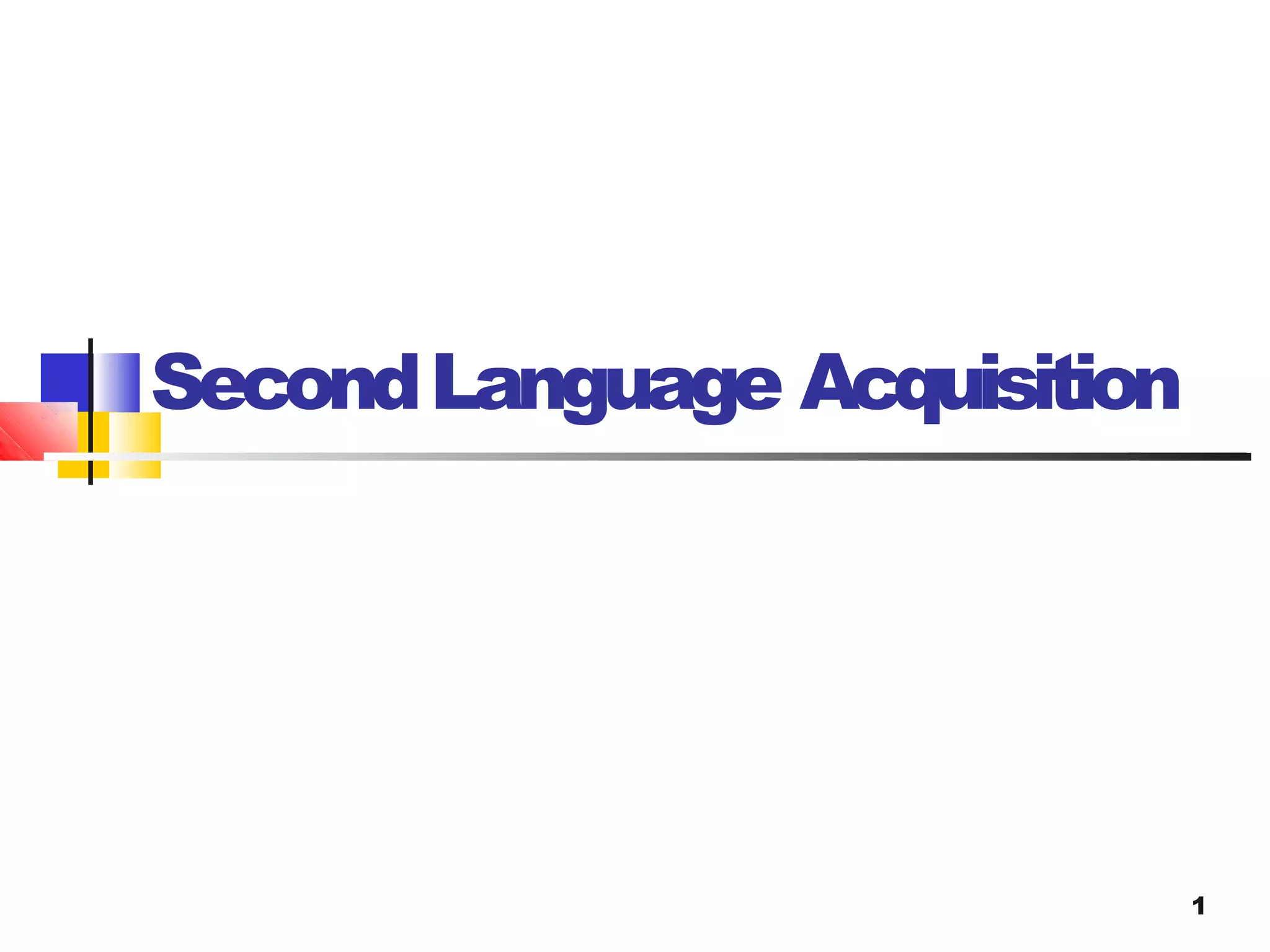 1. Second language acquisition refers to learning additional languages beyond a person's first language. It can occur in both children and adults.