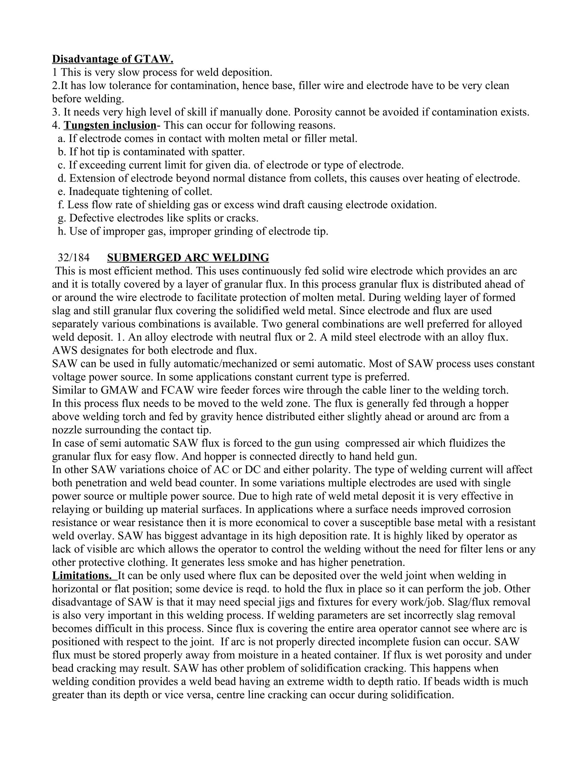 - Gas tungsten arc welding (GTAW) is slow but requires a clean environment and high skill level. Contamination can cause porosity.