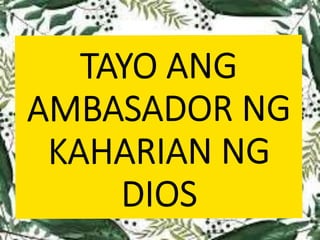 Ang dokumento ay naglalaman ng mga pangunahing prinsipyo ng pananampalataya batay sa mga talata mula sa Bibliya. Ito ay nagtatampok ng mga tema ng pagbabalik-loob, paglago sa pananampalataya, at ang halaga ng pagkakaisa at pagliligtas. Ang mga mensahe ay nakaugat sa mga salin mula sa mga talatang nagbibigay-diin sa espiritual na pag-unlad at gawain ng Diyos sa buhay ng tao.