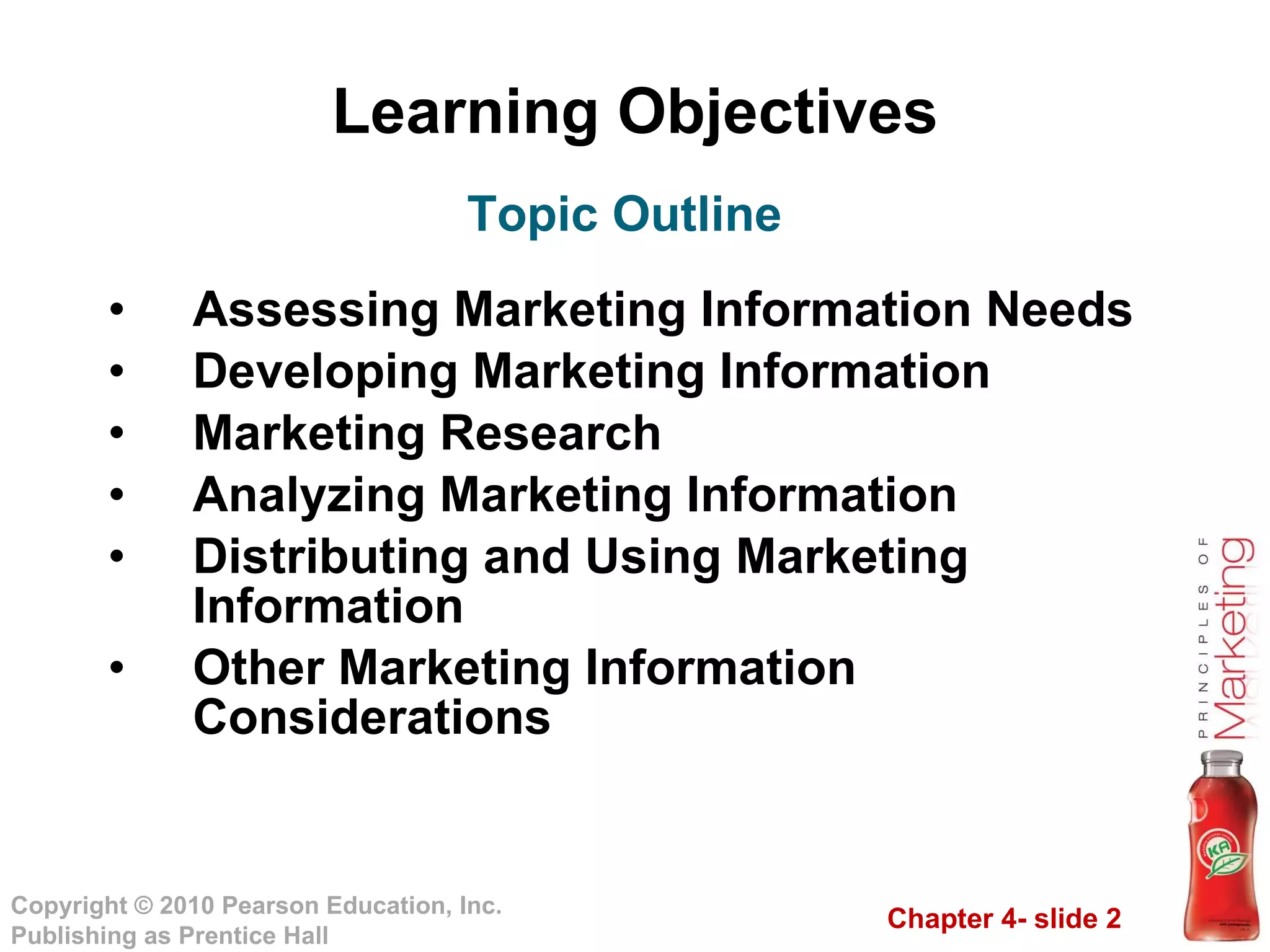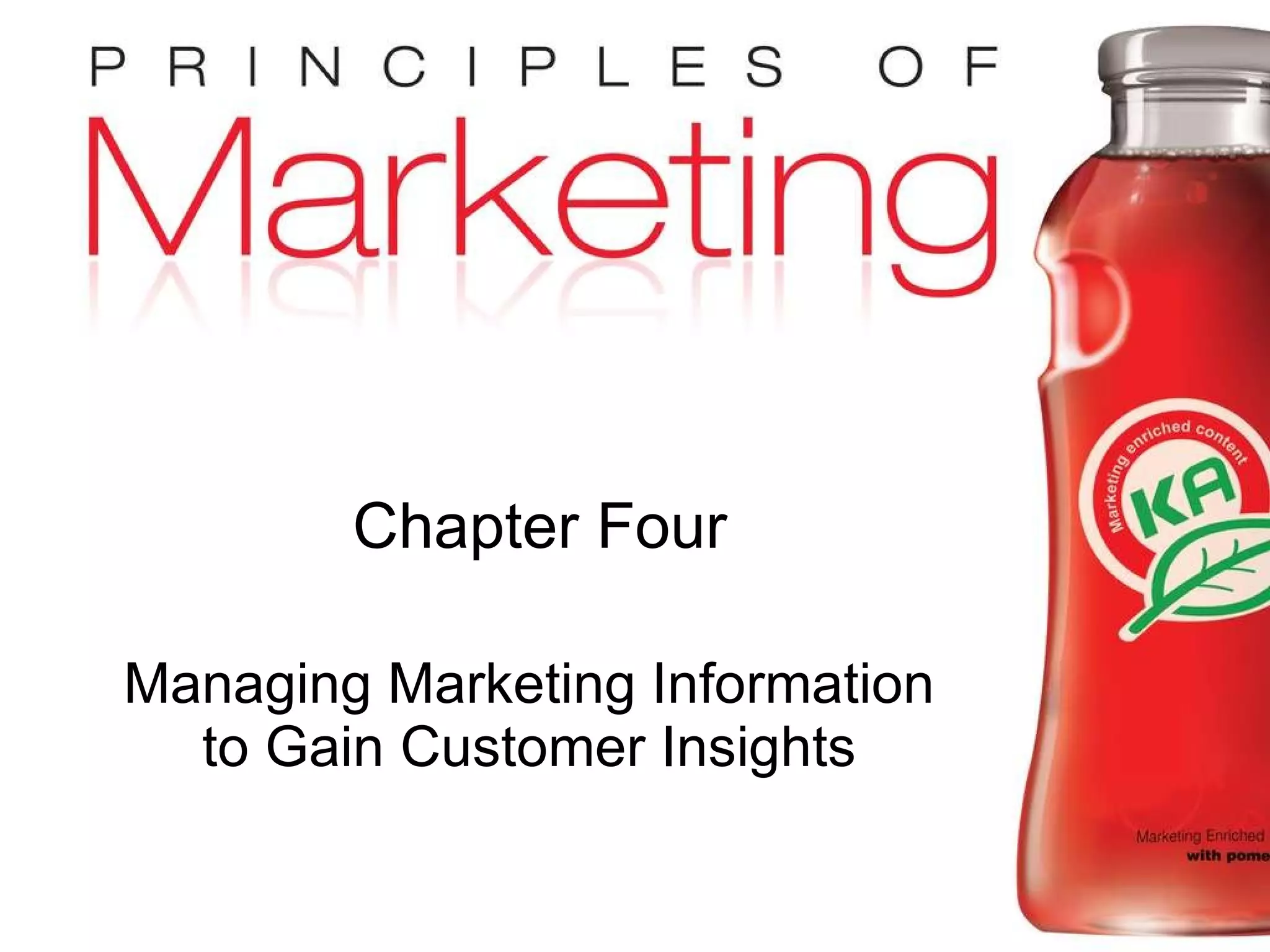 The document discusses managing marketing information and gaining customer insights. It covers assessing marketing information needs, developing marketing information through various sources like internal databases and marketing research, analyzing information using tools like customer relationship management, and distributing and using information. Key aspects of developing marketing information include defining problems, developing research plans, using various research approaches and instruments, and implementing research. The goal is to effectively gather and use information to better understand customers.