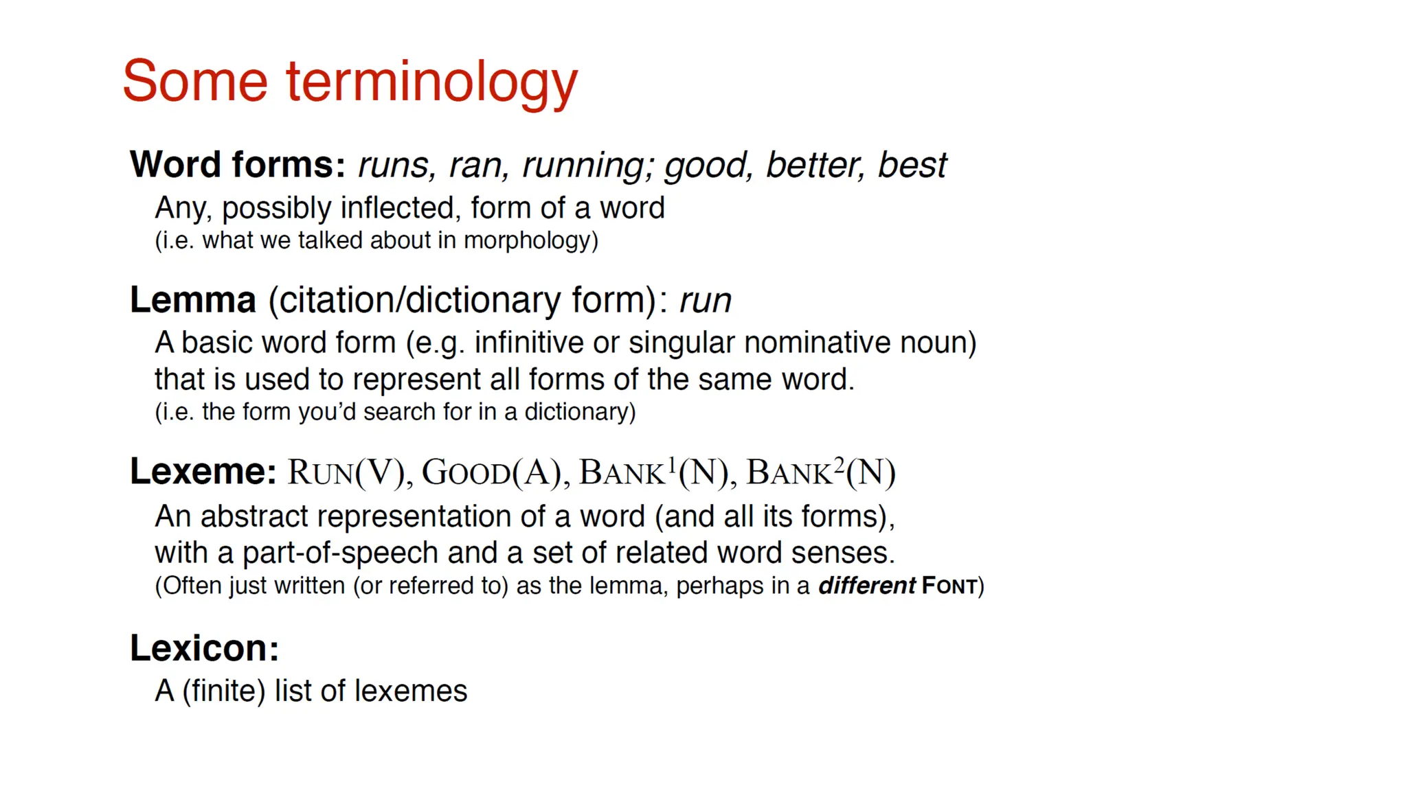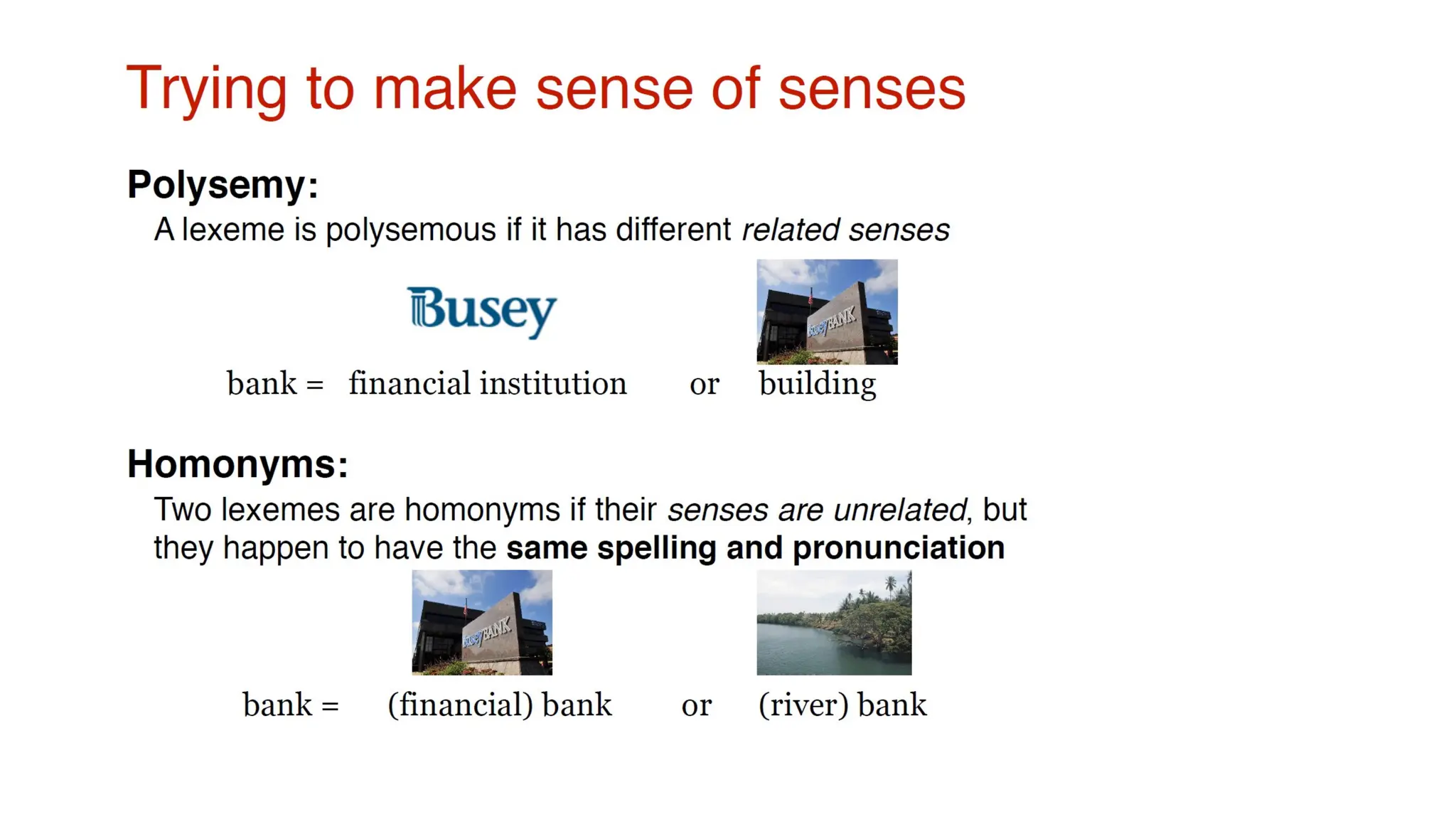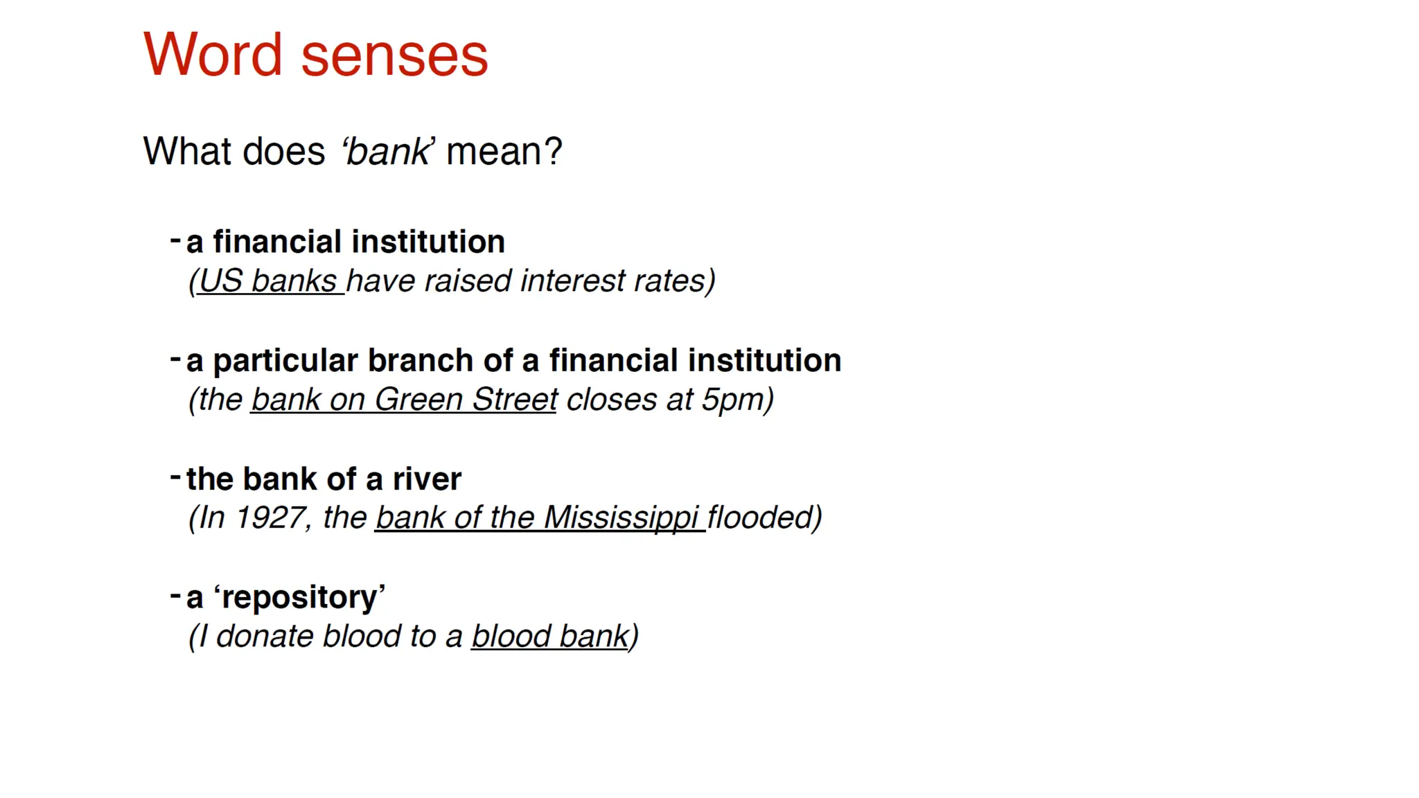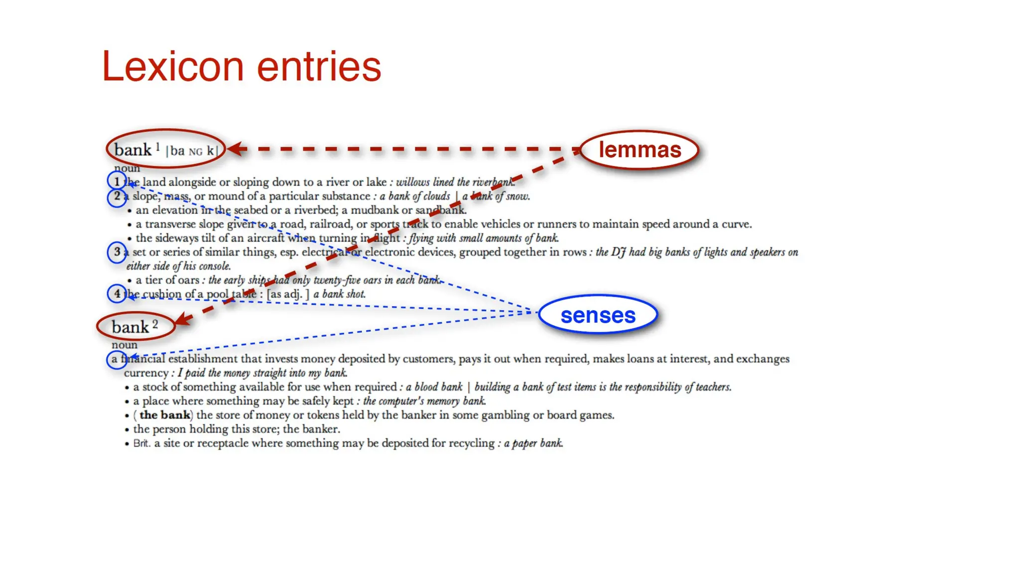 Glosses: textual definitions for each sense. Glosses are not a formal meaning