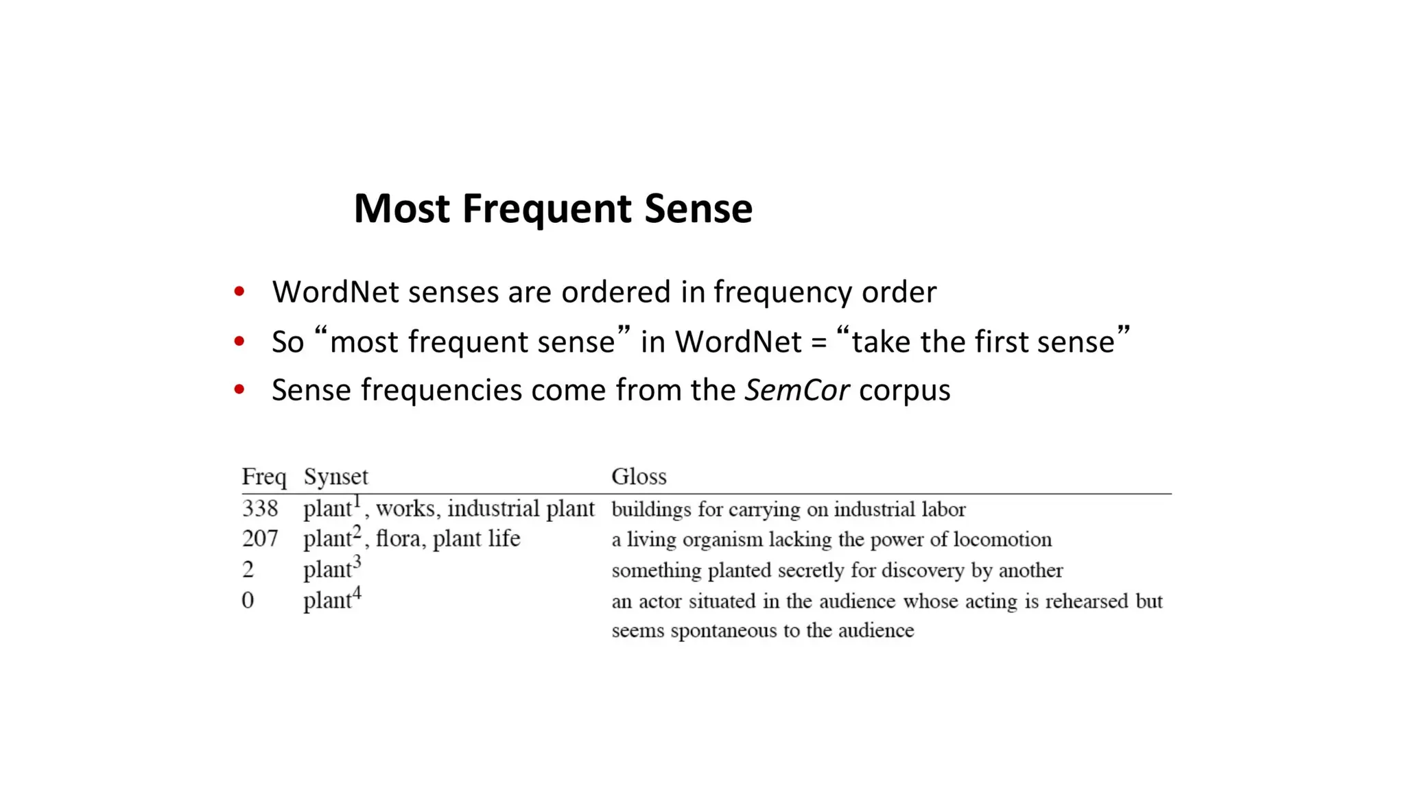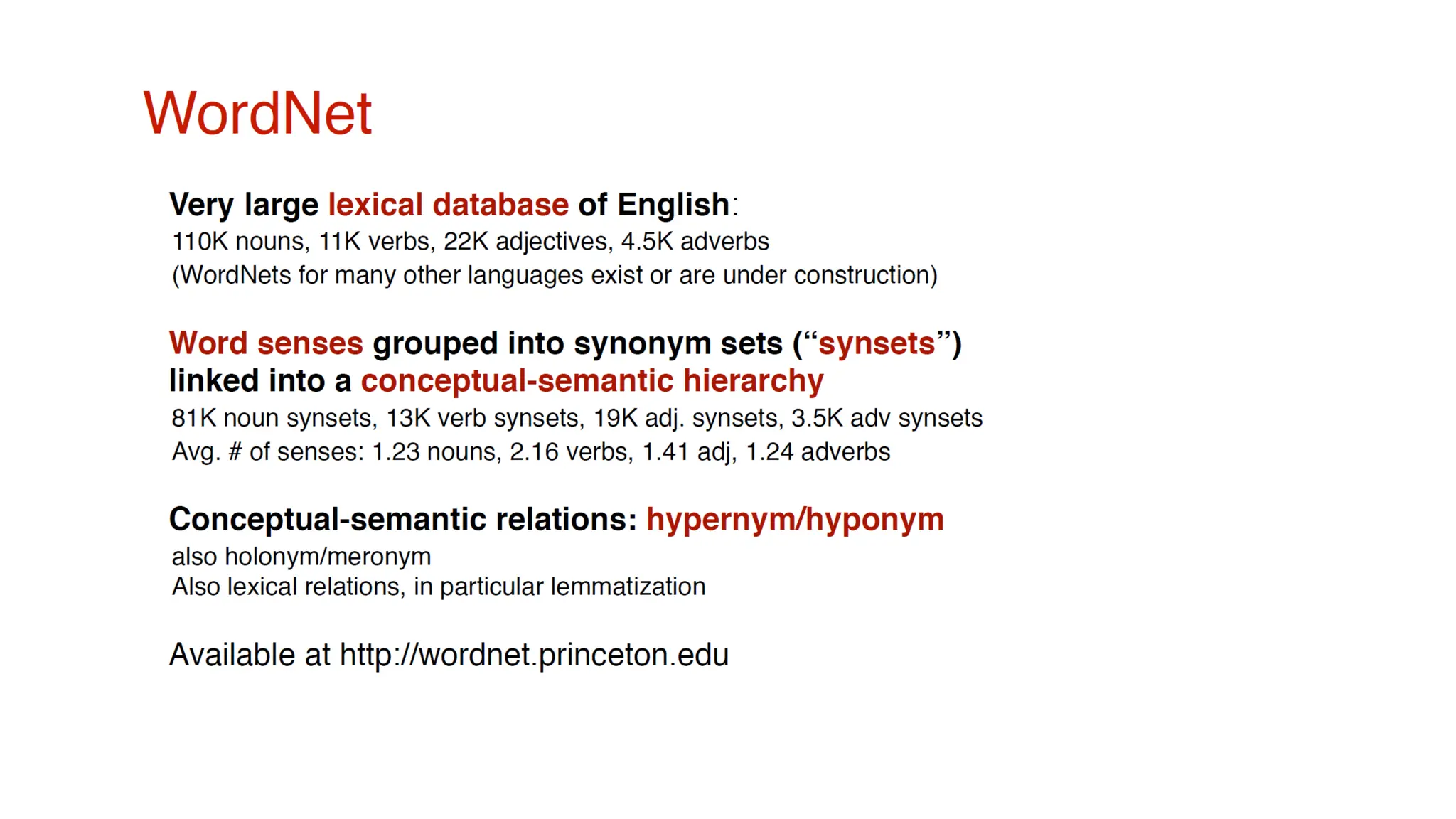 • The average noun has 1.23 senses, and the average verb has 2.16