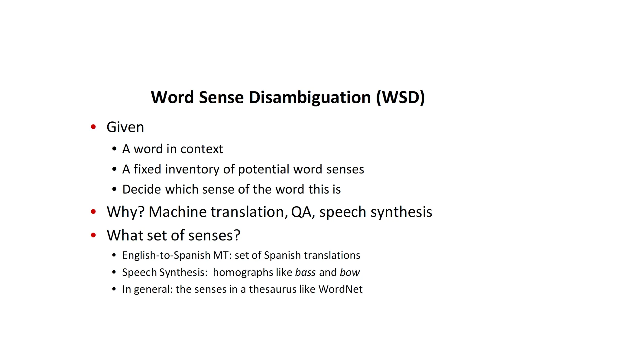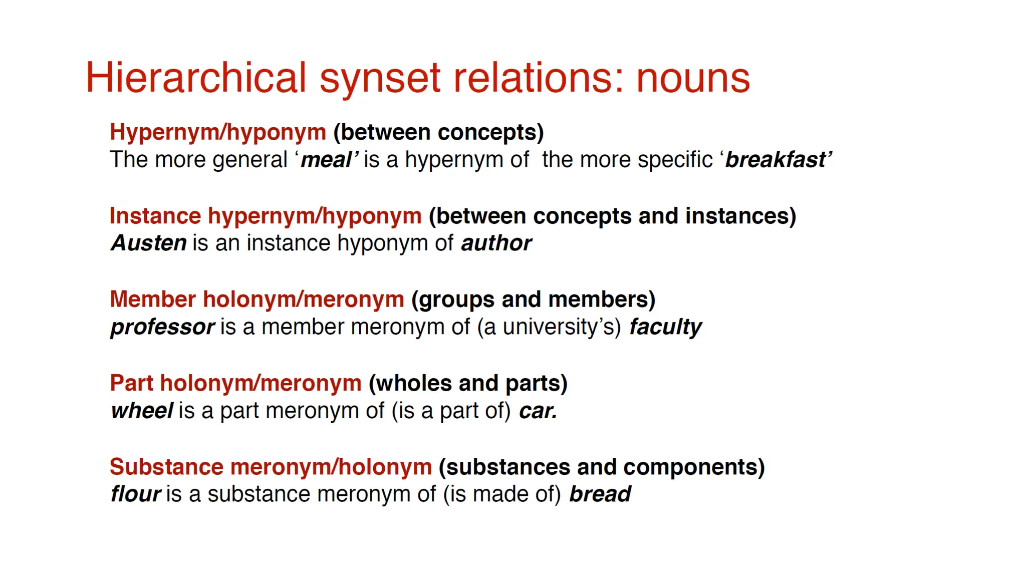 • The set of near-synonyms for a WordNet sense is called a synset (for synonym set);
