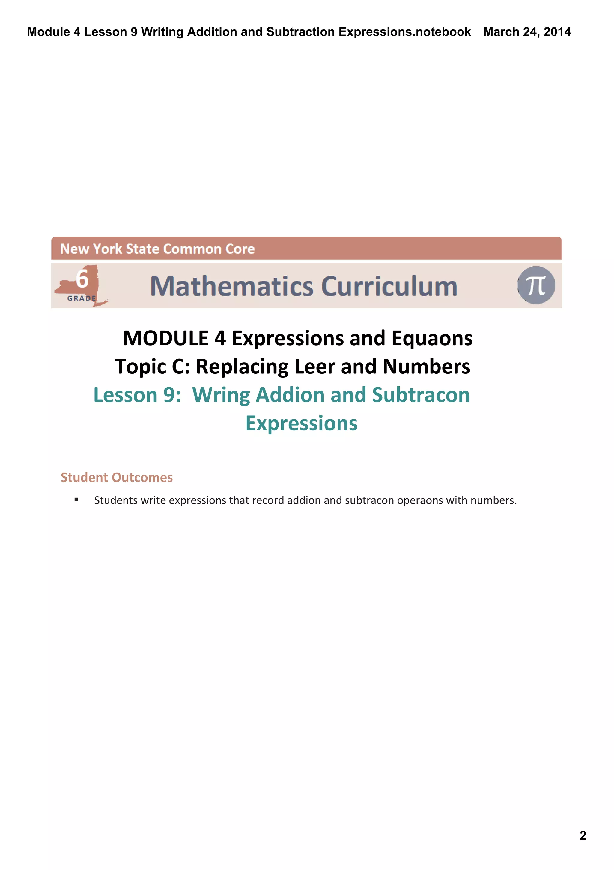 This document provides examples and exercises for writing addition and subtraction expressions. It begins by having students write expressions for addition and subtraction of numbers and variables. Students are asked to draw bar diagrams to represent expressions and show that equivalent expressions can be written in different orders. The document emphasizes using parentheses correctly when subtracting a sum. Exercises practice writing expressions for various addition and subtraction scenarios and identifying when order matters. The goal is for students to be able to write expressions that accurately represent addition and subtraction operations.
