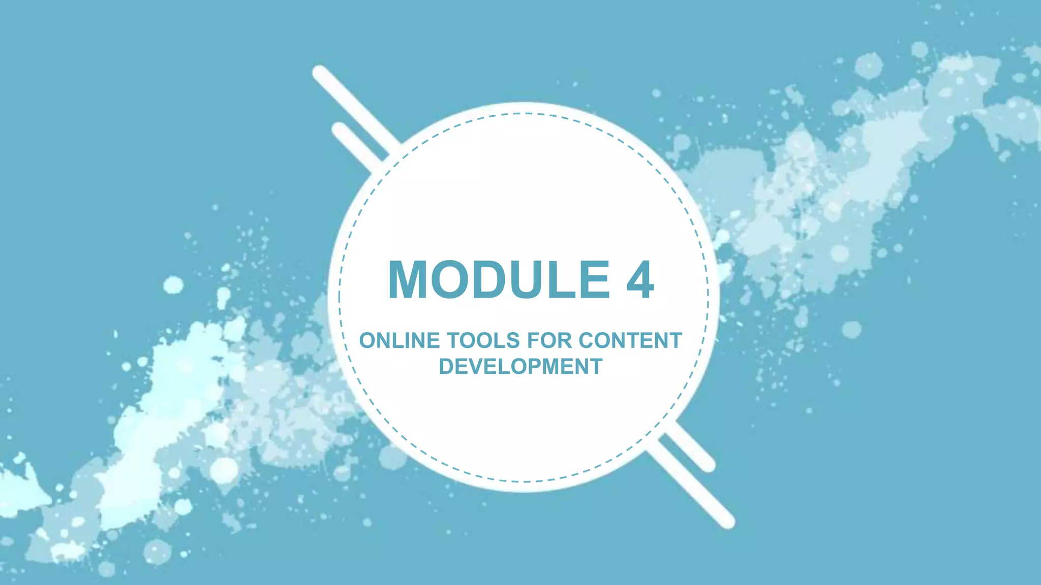 The document provides an overview of online tools that can be used for content development. It discusses online platforms and applications, web design principles and elements, using templates and WYSIWYG editors for web design, online presentation tools, cloud storage, and mapping applications. Specific applications and websites are described for each category, such as Google Drive for cloud storage, Prezi and SlideShare for online presentations, and Google Maps and Wikimapia as mapping tools.