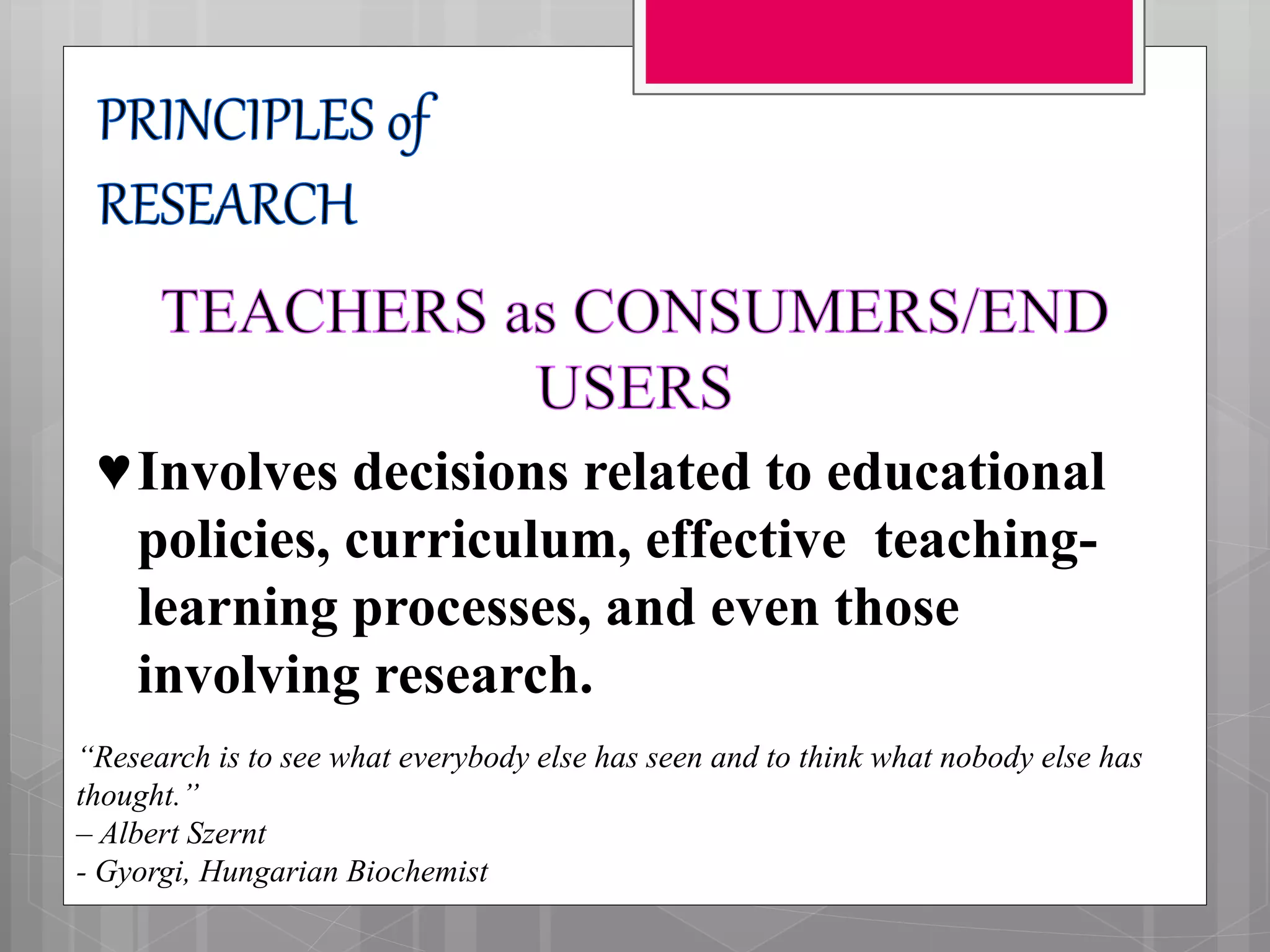 This document discusses research methods and their application in education. It begins by outlining the scientific method and its 5 steps. It then describes and compares 7 common research designs: case study, correlational study, experimental, naturalistic observation, longitudinal, cross-sectional, and sequential. It also lists and defines 5 common data gathering techniques. The document concludes by discussing ethical principles in educational research and the impacts of teacher involvement in research.