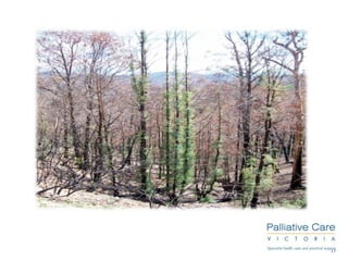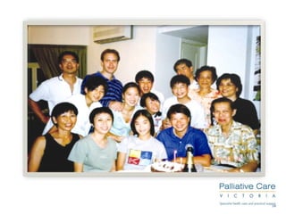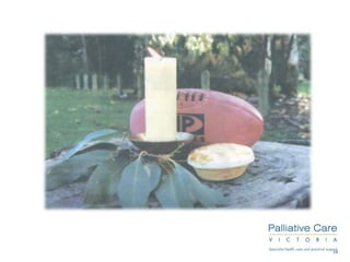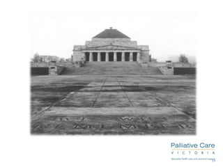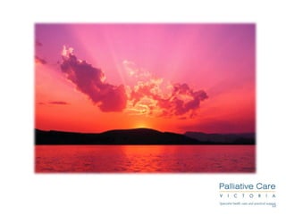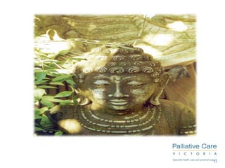 This module aims to provide spiritual care training to participants. It discusses the relationship between religion, spirituality, and pastoral care. Spiritual care involves engaging with others as fellow humans, attending to how people receive care, and supporting what nurtures a person's spirit. When facing death, some common spiritual concerns include relationships/belonging, meaning/self-worth, and coping/control. Effective spiritual care involves listening to a person's story without judgment and building trust.