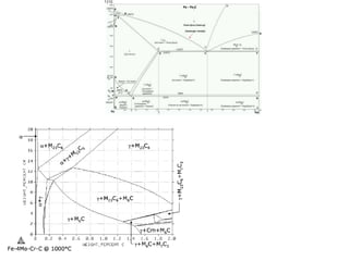 2. The effects of common alloying elements like Cr, Ni, Mo, Mn, etc. on properties like strength, hardness, corrosion resistance, and phase transformation temperatures.