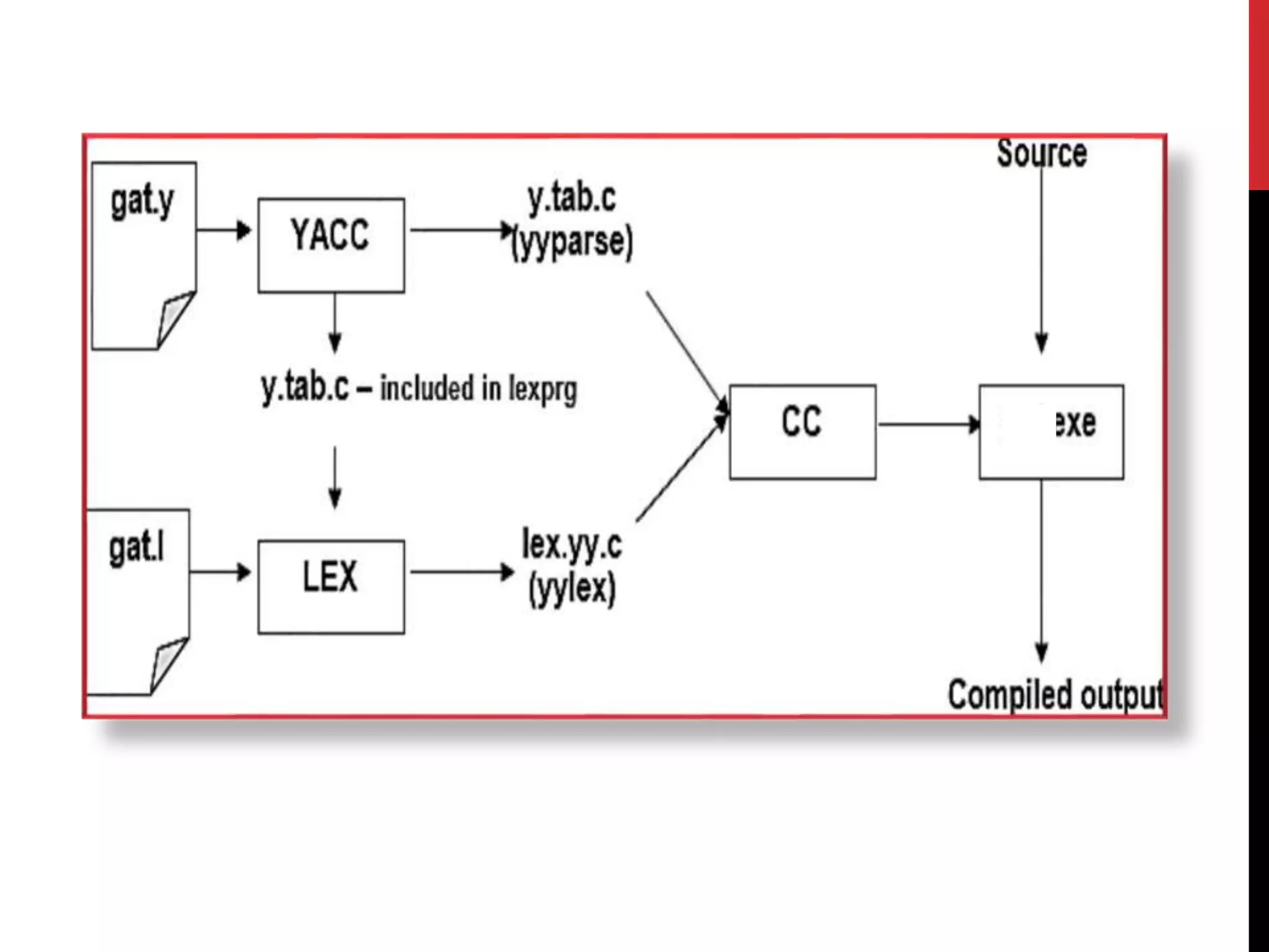 3) Lex and Yacc are commonly used together, with Yacc calling Lex's yylex() function to retrieve tokens which are then parsed according to the grammar rules.