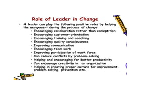 - Organizational culture and politics significantly influence organizational development. Culture provides shared norms and meanings while politics involves self-interest that can help or hinder goals.