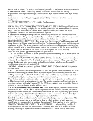 3. Welder qualification involves testing weld samples to specific code requirements to verify a welder's skill level. Qualification remains valid indefinitely if the welder continues producing satisfactory results with the process.