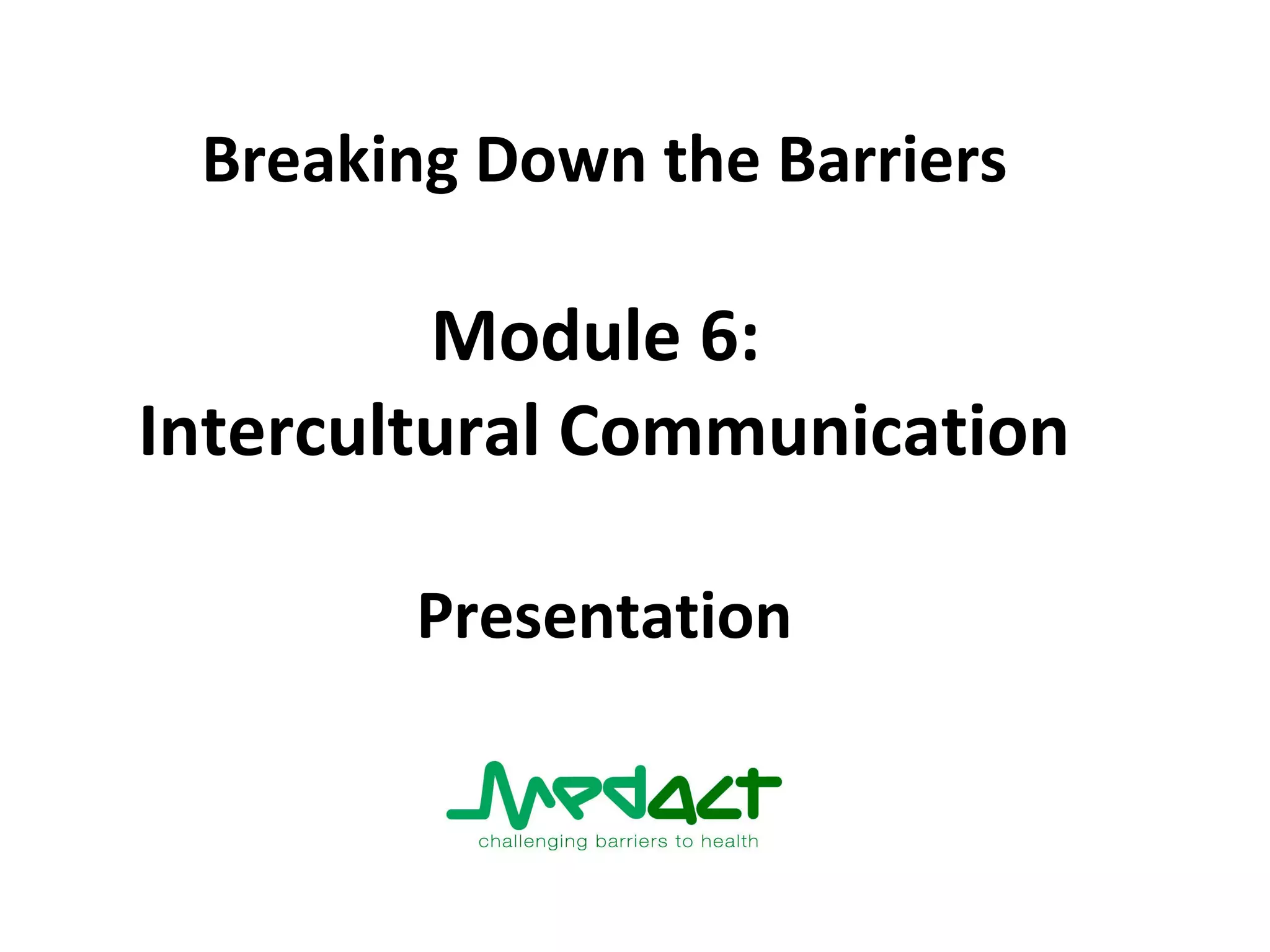 This document discusses intercultural communication barriers and how to improve intercultural communication skills. It notes that body language, ways of speaking, and listening conventions vary across cultures and can lead to misunderstandings. The document recommends developing awareness of cultural variations, being open-minded about differences, checking for understanding, and learning from individual encounters to improve intercultural communication abilities.