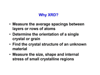 (iii). Principle and applications of X-Ray Diffraction (XRD) technique