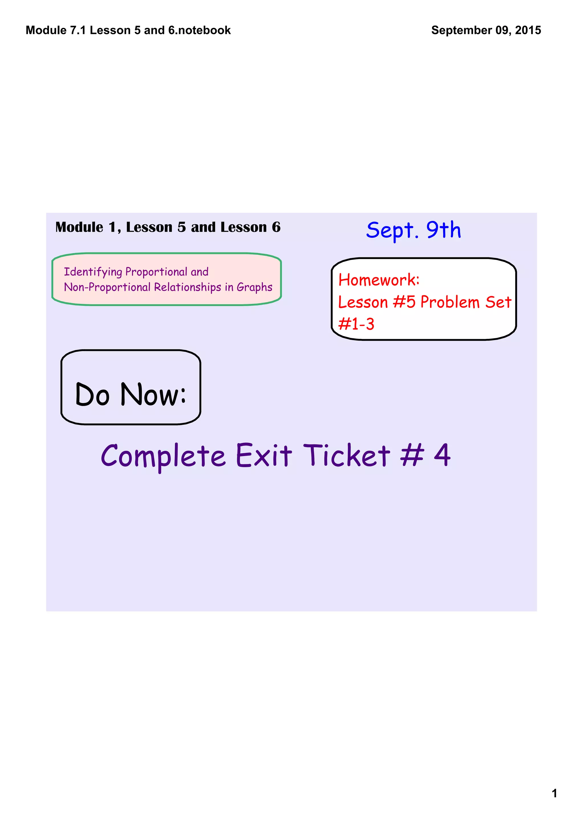 1) The document appears to be notes from a math lesson on identifying proportional and non-proportional relationships in graphs.