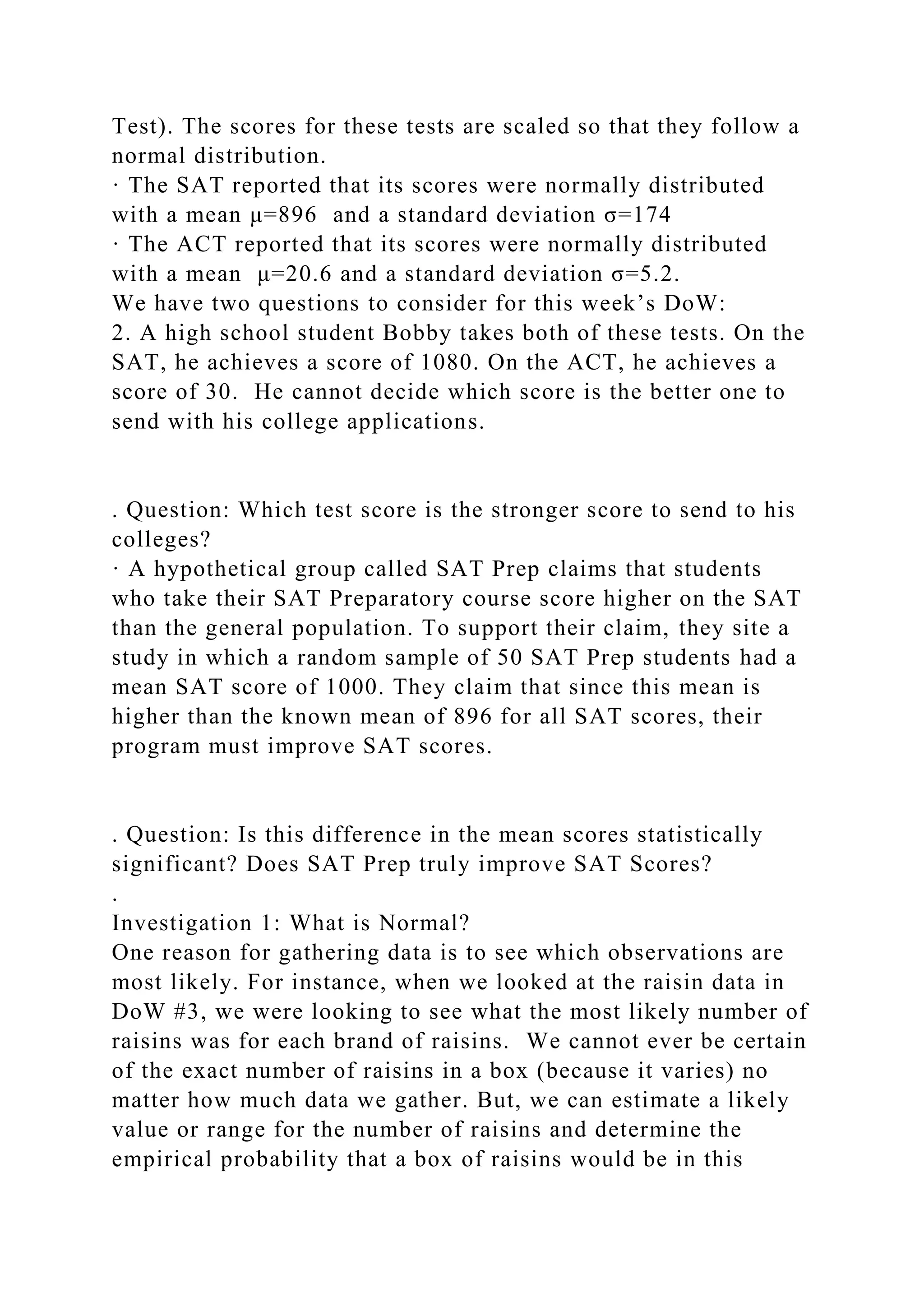 Module five focuses on normal distributions and hypothesis testing, exploring the characteristics of the normal distribution and its applications in inferential statistics. It examines the empirical rule, z-scores, and the significance of test scores using examples from the SAT and ACT. The content aims to familiarize learners with the concepts and technologies used to calculate probabilities and perform hypothesis tests related to normally distributed variables.